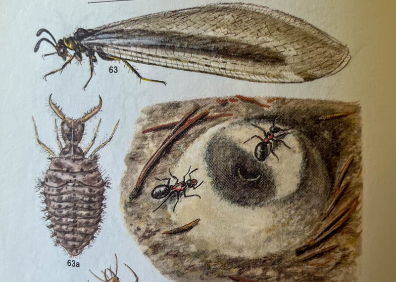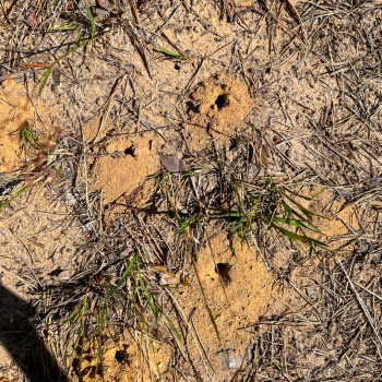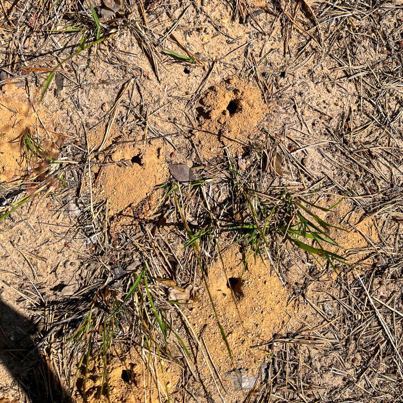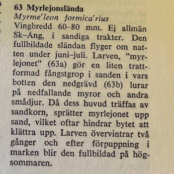 På grusvägen såg vi små högar med hål i och vi undrade vem som bor där. Det gör myrlejonet. Ni kan läsa om det på bilden med text. Den lilla krabaten på sista bilden hade jag med mig hem.