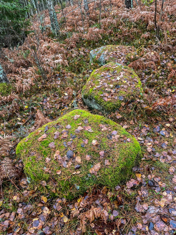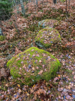 Vi besökte platsen 12 stenar. Det är 4 grupper med 3 stenar i varje. Det lär ha varit samlingsplats för Ryfors ungdomar en gång i tiden.