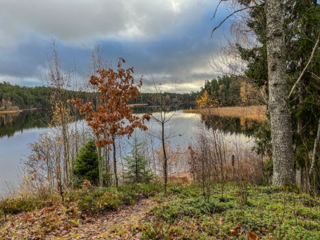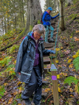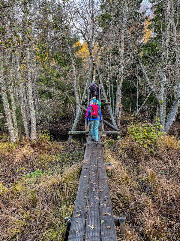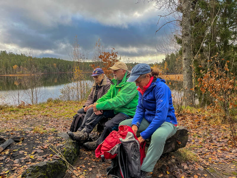 Vi gick utmed Stråkens västra strand innan Ryfors och till Spängerna. Mesta delen går på Södra Vätterleden. Det blev mycket upp och ner i ravinerna. På ett ställe är det så brant att man behöver rep att hålla sig i.