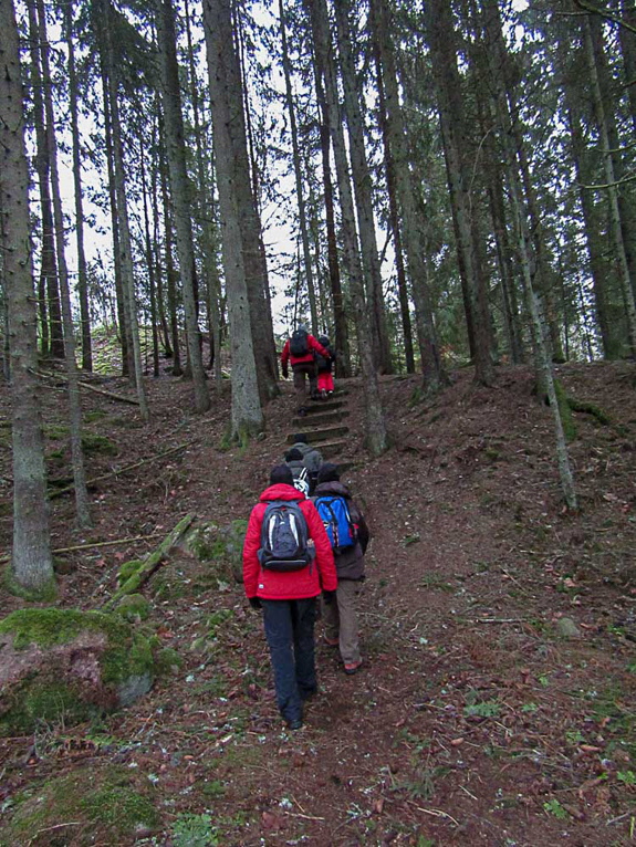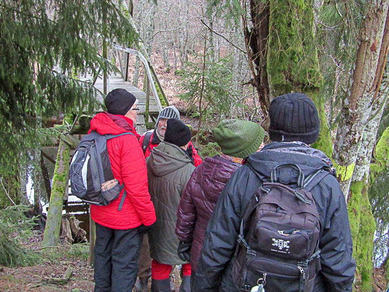 Årets första vandring blev i Gammelskogen fram till Pinnabron, Ryds kvarn, utmed Tidan och avslutade med Maltes bro. Med Manns barnbarn blev vi 14 st. och gick ca 4 km. Mystiska figurer i Gammelskogen, en jättestor rotvälta, bäver bygge och bävergnag. Svanar och gräsänder i Tidan, ganska mycket vatten i Tidan men mer behövs.