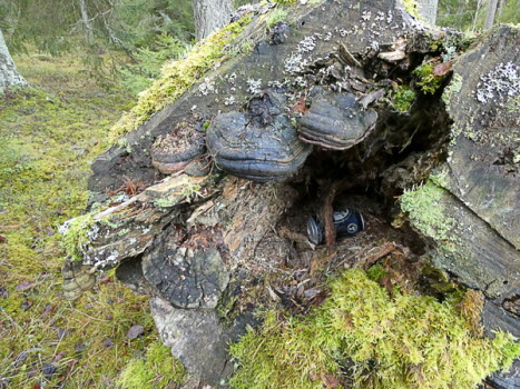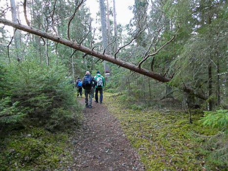 Vi gick till Helsickes kärr och tillbaka mot Fridhem. Vi var 10 stycken och gick 5 km. Det första vi såg var en skylt av Fetvedens vänner. Fetved eller töre får man om man randbarkar tall på rot. Det blir ett motståndskraftigare virke. Läs på fettedens vänner om du vill veta mer. Det fanns barkade träd på två ställen. Vid kärret är det mycket vatten och vi hade fin utsikt mot uddar och öar. En burkgömma hittade vi också. I år ska vi registrera hur mycket skräp vi plockar. Förra veckan blev det 800 g. På tillbakavägen hörde vi ett kraftigt ihållande ljud och vi kom så småningom fram till att det kom från Tissefällan. Nyfikna som vi är måste vi ju kolla. Det var två män som höll på att testa drönare. Den som förde oväsen var en stor drönare son drevs med bensinmotor och kunde vara i luften 4,5 tim. Den lilla batteridrivna klarar bara 30 min.