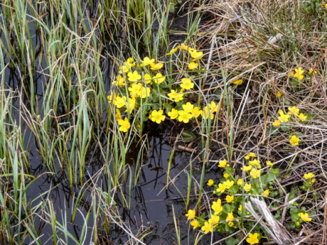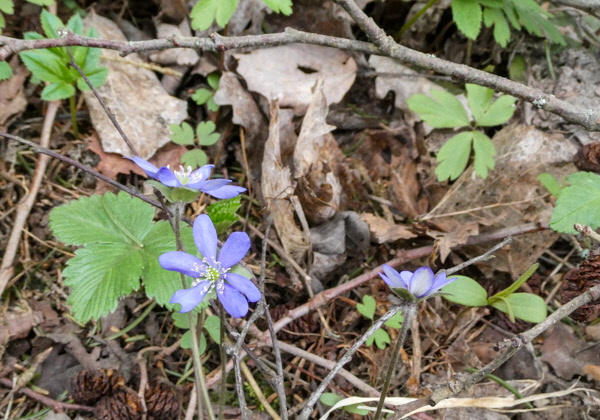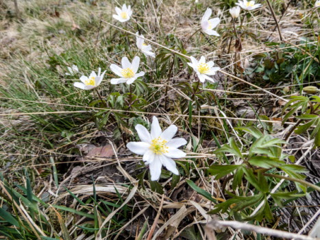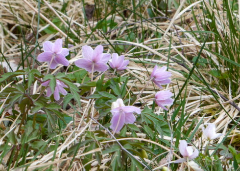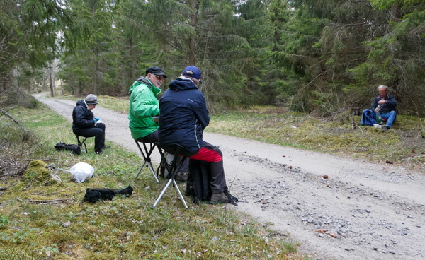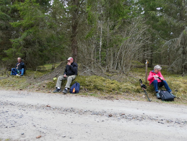 Vi gick från skjutbanan mot Hästhagen och Svartebacken. Vi var 7 stycken och gick 4,5 km och plåckade 440 g skräp. Kabbelekan har börjat blomma så vackert i dikena. Ett raserat älgtorn så här går kanske älgen säker. Lila vitsippor och vitsippor med många kronblad. Blåsipporna sjunger på sista versen. Vi sitter med stora avstånd när vi fikar. Det röjs mycket i skogen och det blir fint när det öppnas upp lite. De har barkat några höga raka tallar. Ska det bli fetved eller flaggstänger? Hästarna vid Svartebacken har god aptit och hade inte tid med oss idag. Bild och text med hälsning Helena.