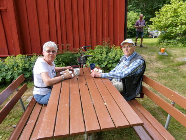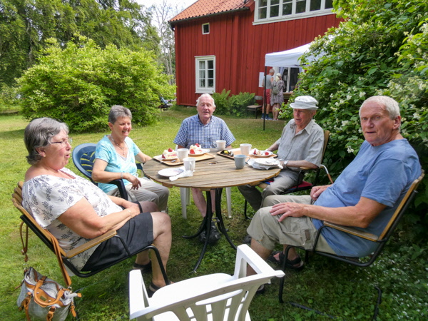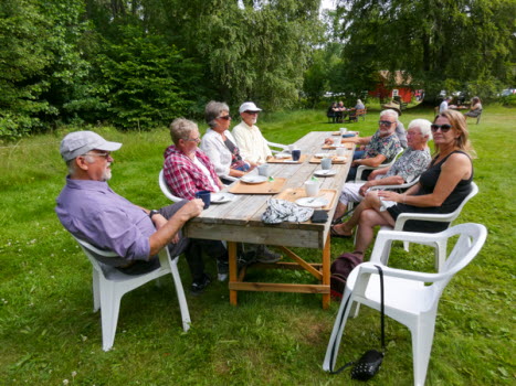Denna gång var målet jordgubbstårta i Bönared. Vi startade vid Hembygdsgården och gick uppför backen mot Bjurbäck för att se Gölen på höjden. Det blev ca 80 höjdmeter. Som vanligt mycket att titta på: Märkliga figurer i träden. I en gammal ek gömmer sig en elefant eller är det ett vildsvin? Mängder med smultron utefter vägen, nattviol, klöver, kornåker, Sveriges nationalblomma liten blåklocka. En björk med ett annat märkligt djur - är det en fågel eller är det en bäver? Så såg vi den lilla Gölen som ligger i en grop nedanför höjden. Vi mätte höjden till 323 m.ö.h. Höjdmätning med mobilen om det stämmer vet vi inte. Det är nog inte så svårt att ta sig ner till vattnet, men det får vara till en annan gång. Nu hägrade jordgubbstårtan så vi vände tillbaka nedför backen. Utsikt mot 8 vindkraftverk i Beth och en väghållningssten för Bönared. Vid Bönared mötte flera SPF:are upp och tårtan smakade jättebra! Vi var 8 som gick ca 4 km. Nu har vi besökt 13 sjöar så det är ca hälften. Text och bild med hälsning Helena.