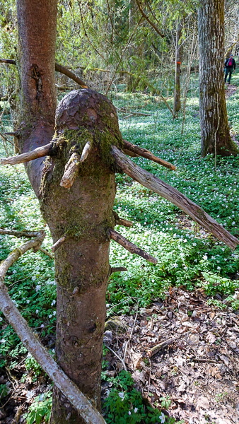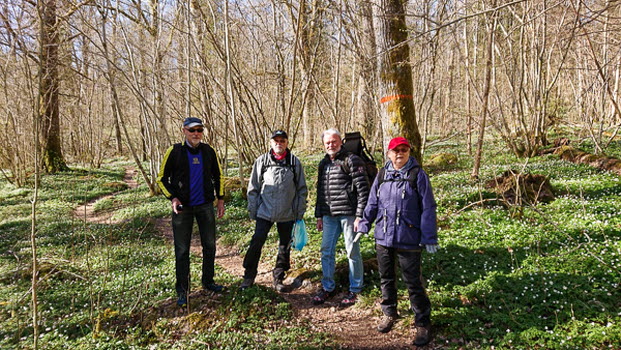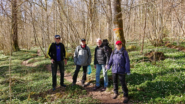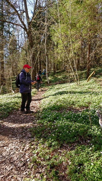 Denna gång var det bara 5 deltagare, men de hade en mycket fin vandring i Nyckelås naturreservat. Både vitsippor, blåsippor och vätteros blommade. En annorlunda gran såg de också. De kunde njuta en stund på bänken vid sjön också.