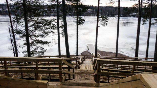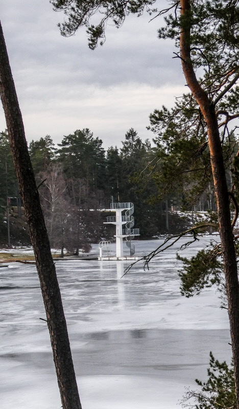 Det blev bilder på badplatser i Mullsjön: Kärleksudden, hopptornet vid hotellet, Käleksudden från sjösidan, vaken för vinterbadare och kommande badplats vid Ekbacka Strand. Det finns ett gammalt vykort på hopptornet som ser likadant ut som den här bilden.