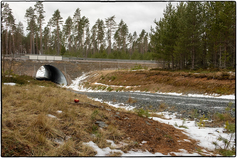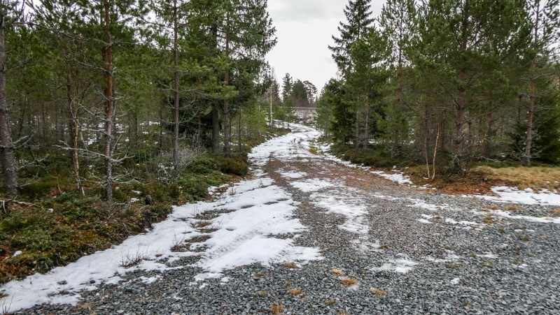 Vi startade vid Pingstkyrkan och gick ut på Kärleksudden, vidare genom skogen från fotbollsplanen ( som var grusplan förr ). Så tog stigen slut och framför oss var det ett stängsel. Vi var framme vid vägen. Vi följde staketet till tunneln mot Västerkärr.