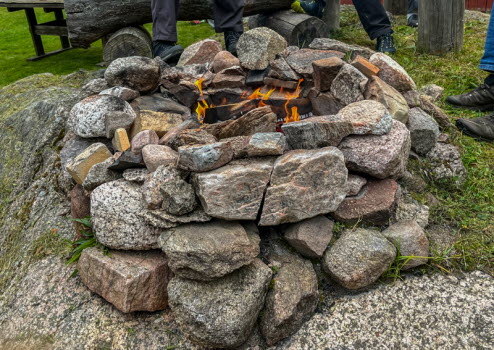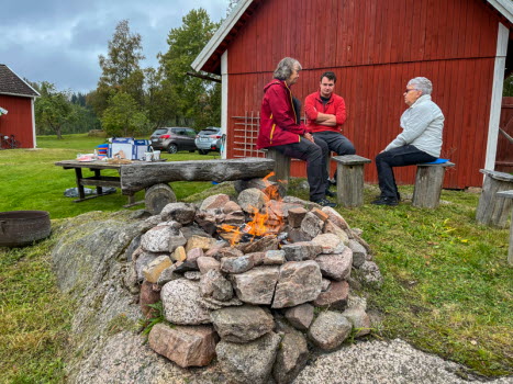Tillbaka vid Skäggstugan värmde vi gulaschsoppan och fick en fin stund tillsammans. Kalle och Anton hade eldat en liten brasa och Kalle berättade om när han och bröderna Pontus och Bo sprang till Vättern och hem igen. En juldag när det var slaskigt sprang de i stövlar till Falks grav och hem igen.