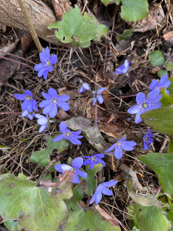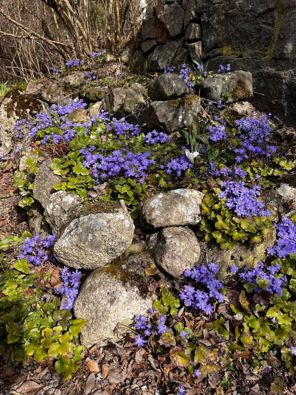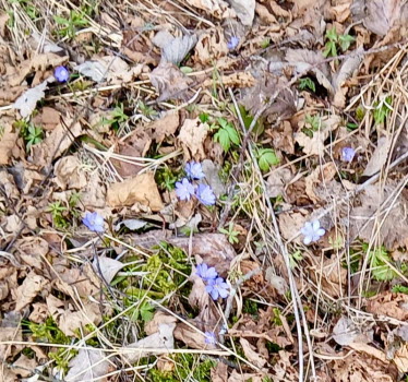 Det stod blåsippor på agendan, så det blev en tur till Gravsjö. Det fanns blåsippor och tussilago bland de torra löven. På Mabacksvägen 11 växer sipporna tätt och hos mig finns en stor planta. Det blev fika i Kallebo.