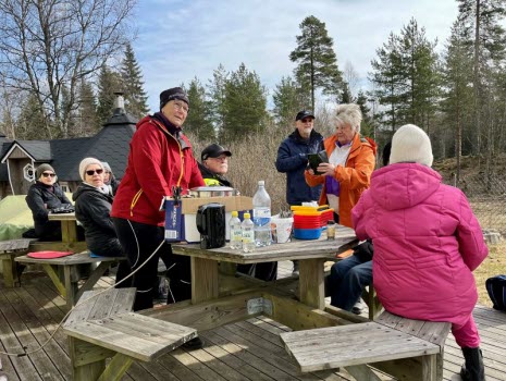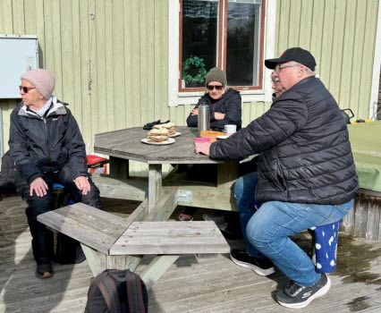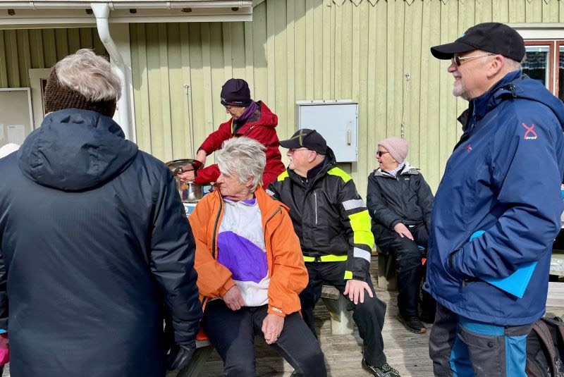 Till ärtsoppa och fika var vi 16 stycken. Det var lite blåsigt men soppan värmer.