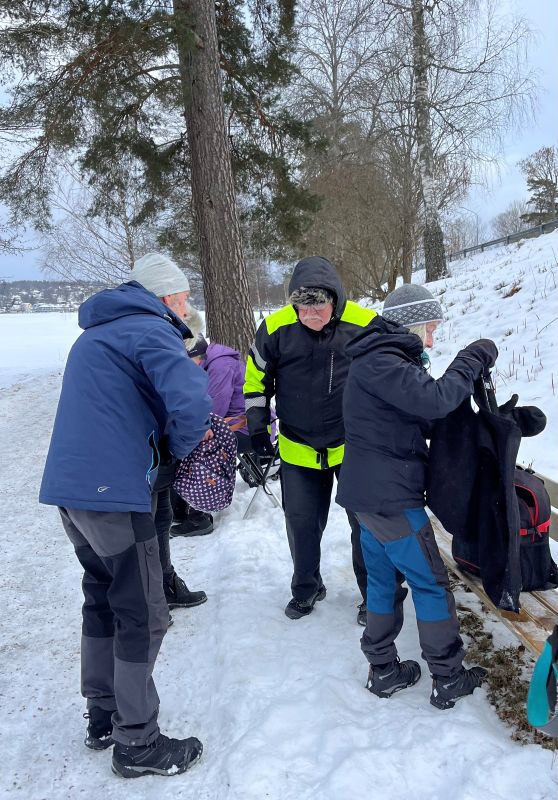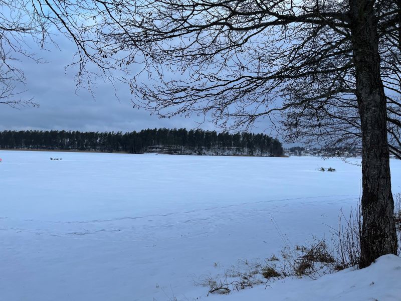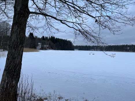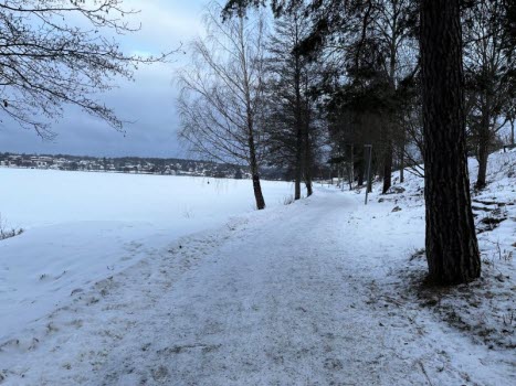 Det blev ett varv runt sjön även denna gång. Finns inte så mycket att välja på om man inte vill pulsa i snö. Fikat smakar bra även på strandpromenaden. Vi lyckades se små gluggar i molntäcket med blå himmel.