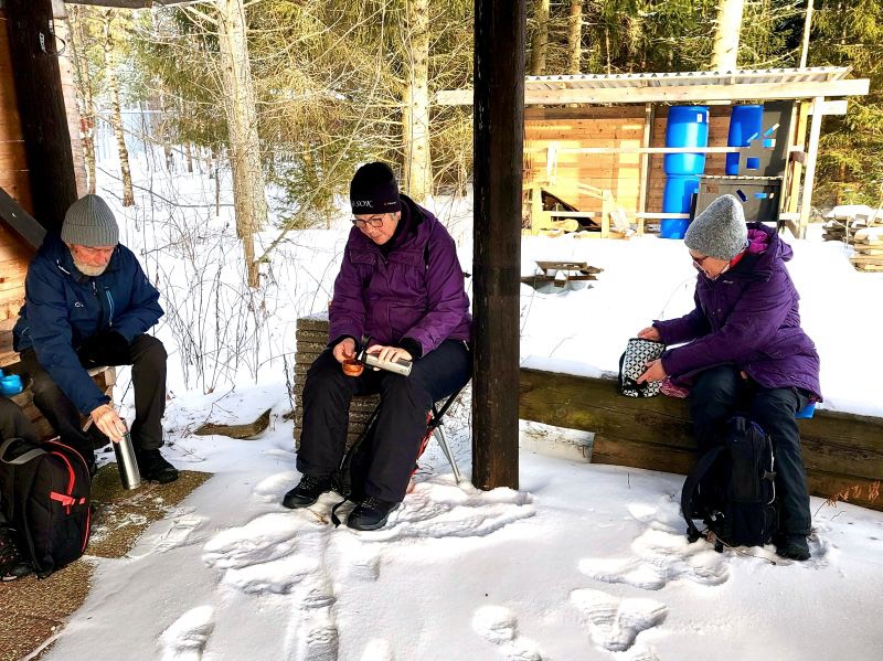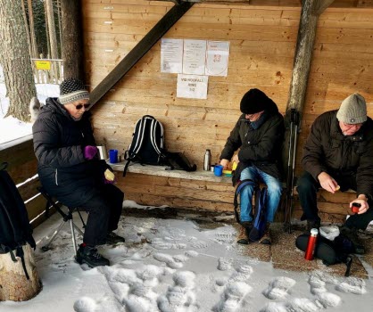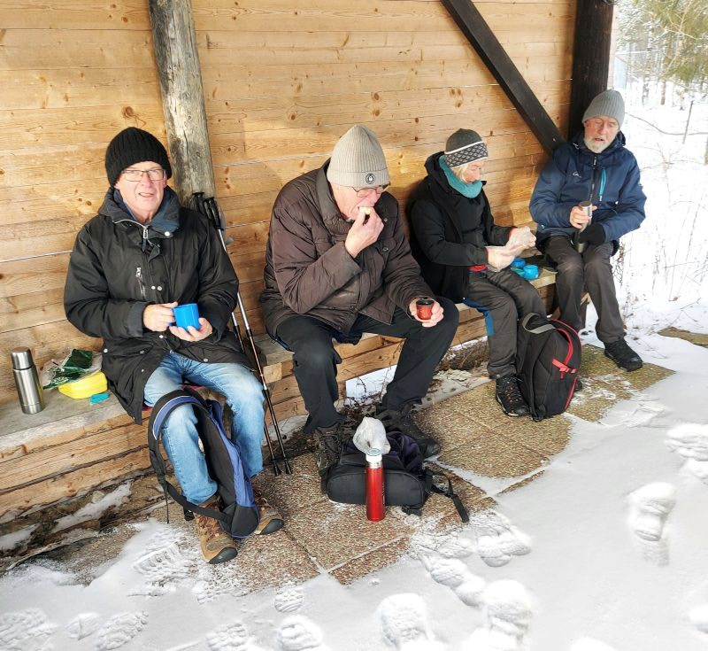 Vandringen gick från parkeringen till skjutbanan. Där blev det fikarast. Fikat är nog det viktigaste på vandringarna med tid för prat och diskussion.