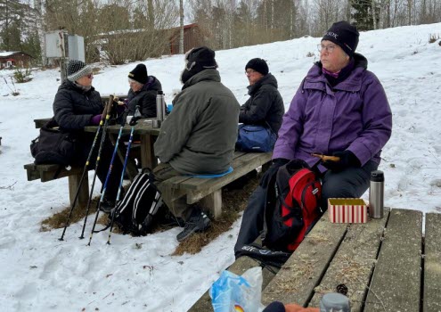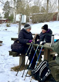 Vi var 8 stycken och vi gick till boulebanan i Väster Kärr. Vi fikade och gick samma väg tillbaka. Det blåste en del så det blev ganska kallt där blåsten kom åt. Det blev 7 km .