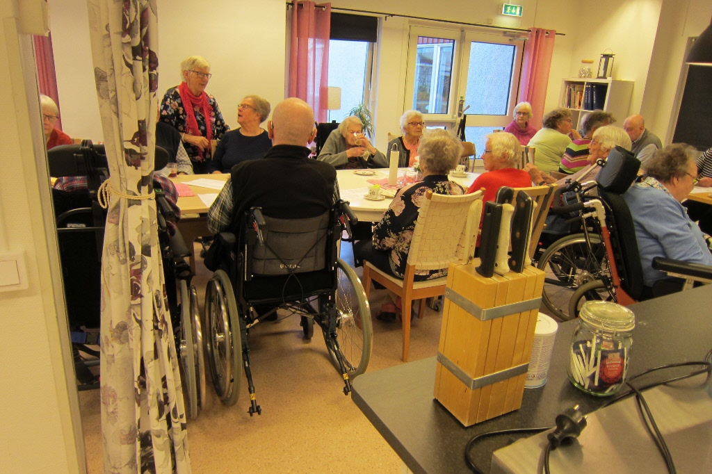 Vi bjöd alla boende och personal på tårtfest med allsång. Yngve Josefsson bjöd på dragspelsmusik och alla verkade nöjda. Sammanlagt var vi ca 40 personer.