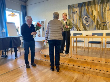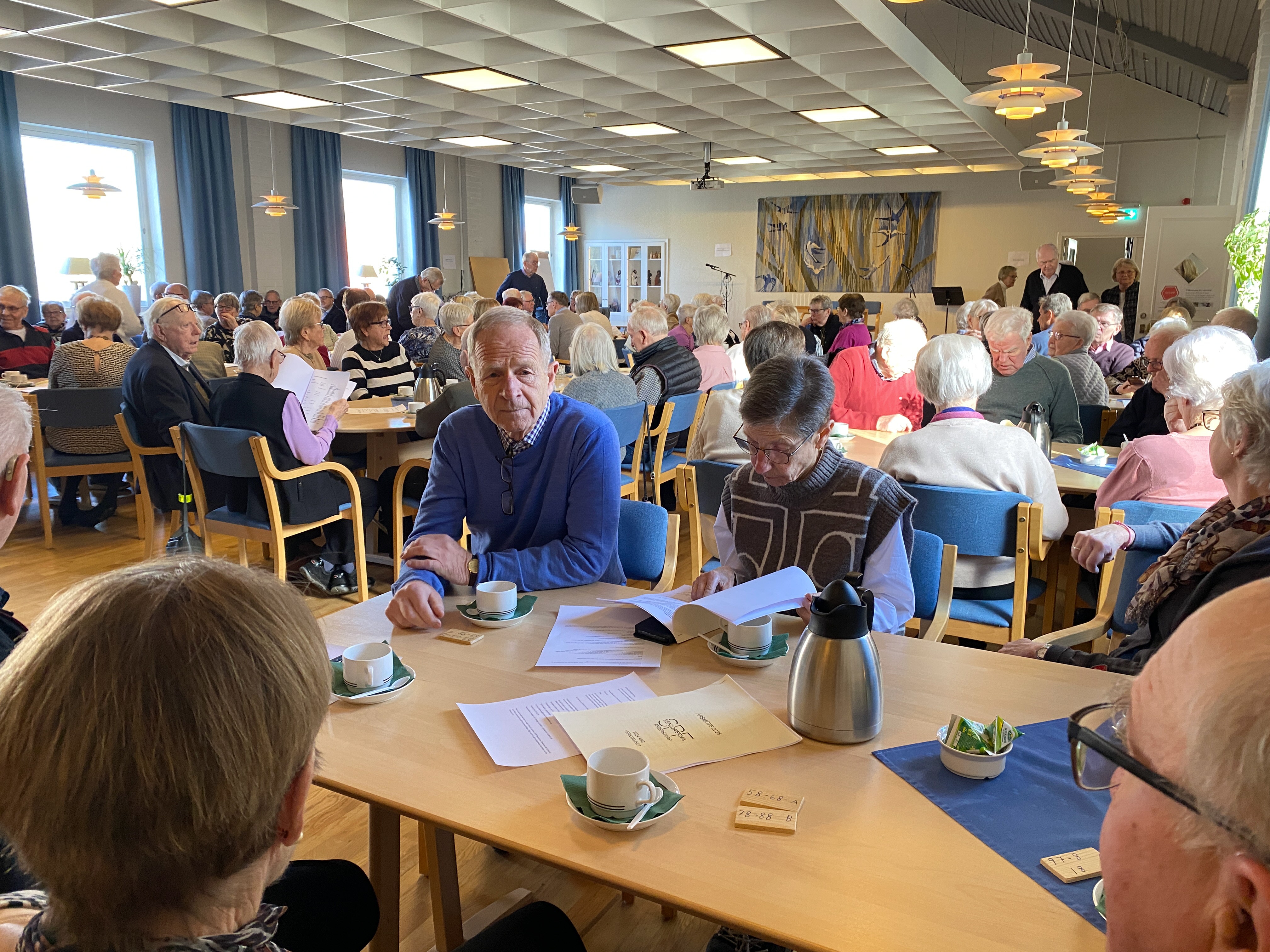 Så har vår SPF-förening haft årsmöte med ett fullsatt församlingshem och en god päron tårta som smakade gott till Kaffet. Vi tackade av Solveig,John-Erik från styrelsen Monicka och Kajsa o Henry från kaffe kommittén .Hasse P känd från Radio Jönköping stod för underhållningen denna dag.