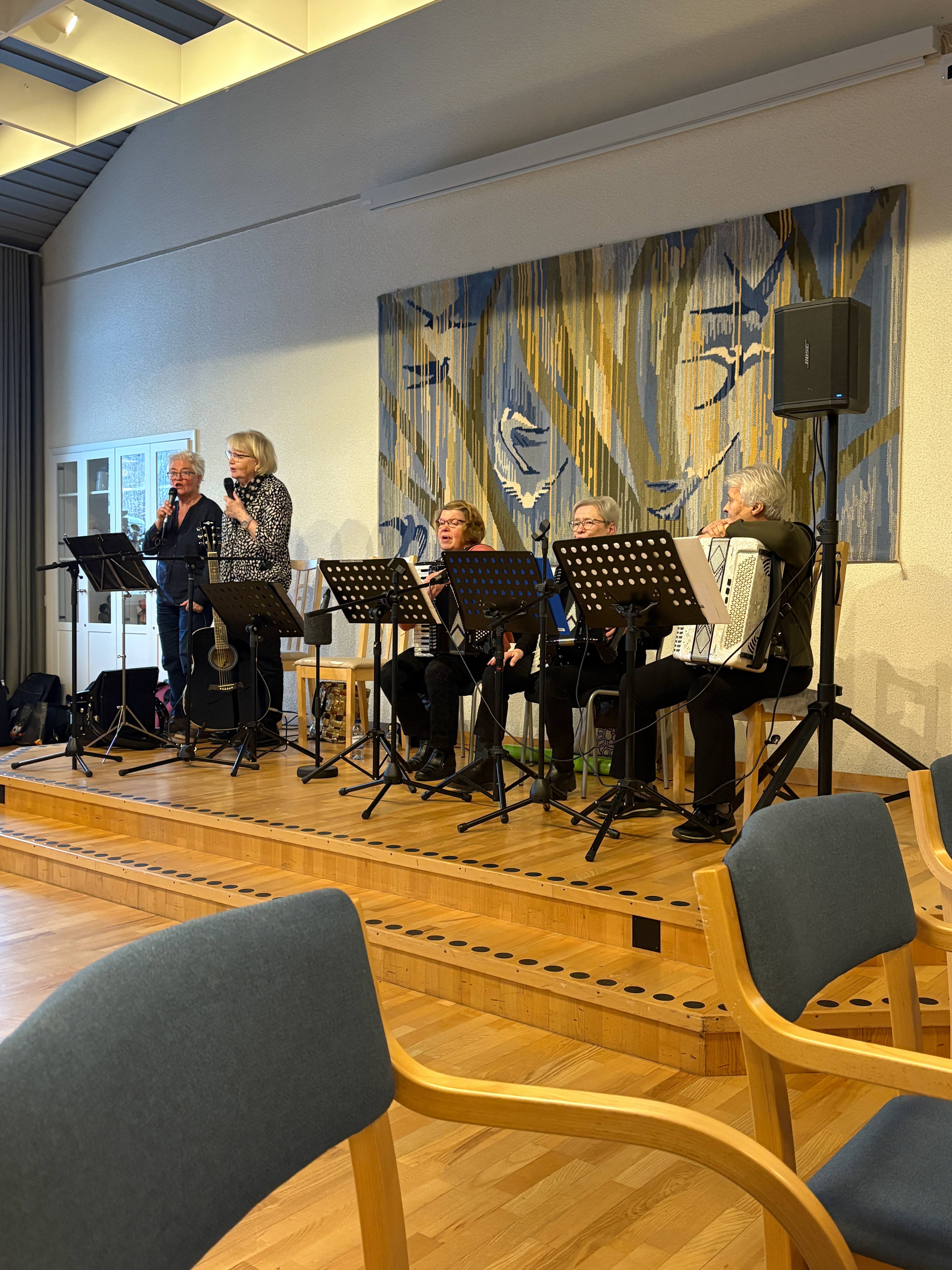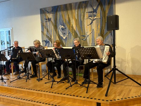 Underhållningen stod Dam draget för, sex glada damer från trakten, som spelade och sjöng. Även lite roliga historier bjöd dom på.