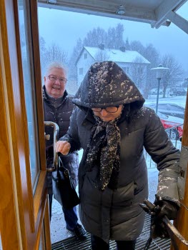 Onsdagens månadsmöte bjöd inte bara på trevligt sällskap, utan också på vinterns först snöfall. Trots snöfallet var vi ett 90 tal medlemmar som slutit upp.
