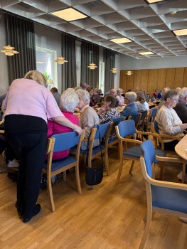 Månadsmöte med 95 pensionärer på plats. Under eftermiddagen fick dom lyssna på Pether Nilsson från Osby, som framförde en blandad repertoar. Reaktionerna bland pensionärerna var blandade, men det blev trots allt ett tillfälle för gemenskap.
