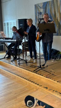 Vi fick lyssna till härlig musik från 60-70 talet som framfördes av Marit och Inge Klaesson sång och gitarr. Göte Axelsson på keyboard.