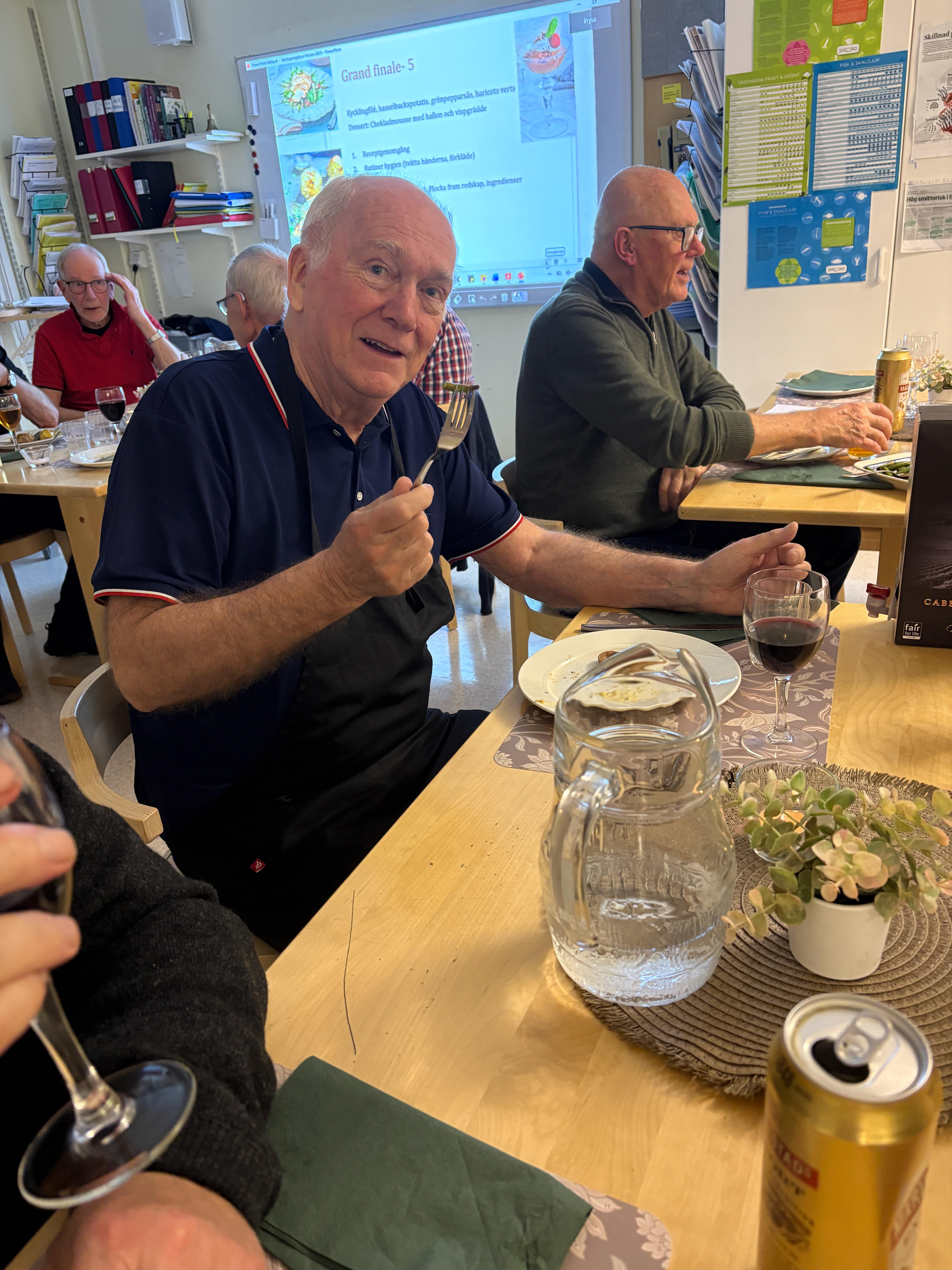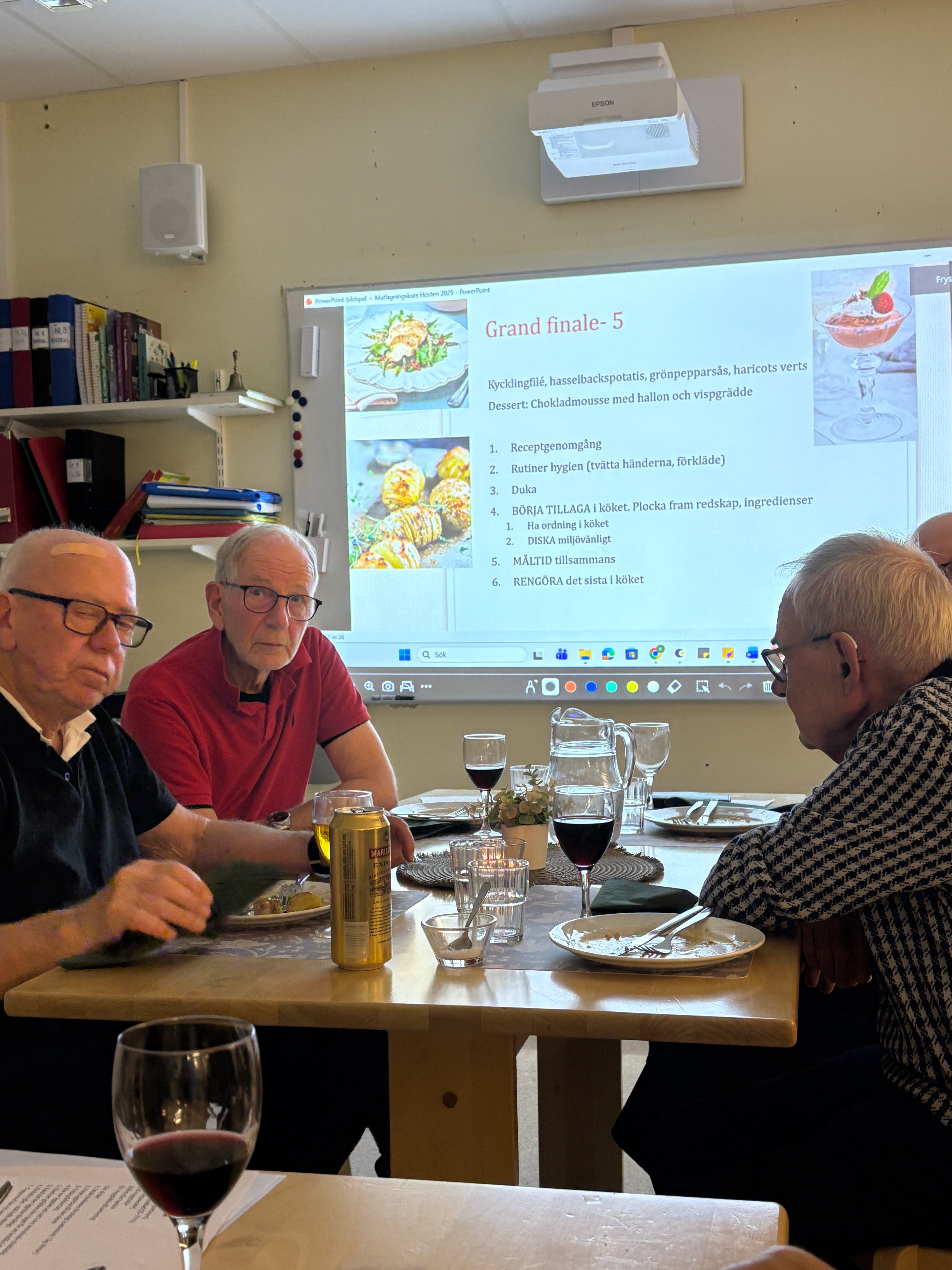 Under hösten har 14 matintresserade herrar gått en kurs på Åsen Skolan med Katarina Dausch som ledare, Gruppen har träffats 5 ggr och varje gång fått laga huvudrätt och efterrätt.