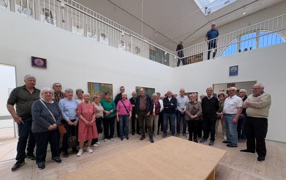 I tisdags åkte 41 seniorer från PRO och SPF Seniorerna Sävsjö och Orion på en gemensam bussresa till Ljungby. Solen sken och vitsipporna blommade denna vackra vårdag. Vi åkte direkt till Ljungbergsmuseet där en engagerad guide tog emot oss och visade många intressanta verk såsom paret från Öland, blommorna i trädgården, miljöer från Ljungby och Italien. Sven Ljungberg var en mycket aktiv konstnär och han målade oftast verkligheten precis som den ser ut, men ibland något som upprört honom i samhället som t ex när Skåne skulle få vatten från Bolmen. Hans blå flyttbara ateljé såg vi i trädgården.