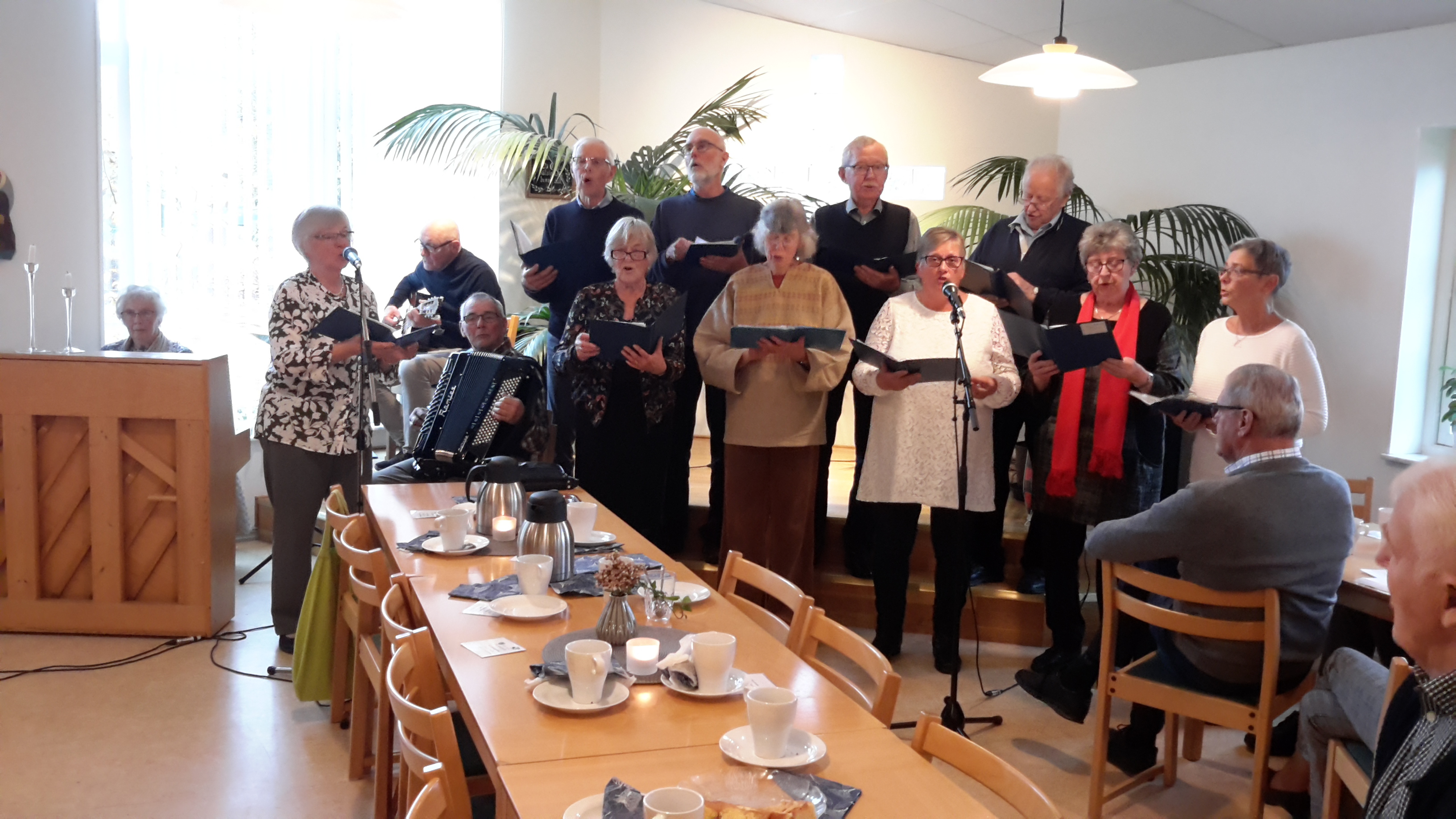 Kören avsluta så dagen med en sångstund under temat "Militärisk nostalgi". Körledaren Gunilla Karlsson gav en kort introduktion till varje sång och vi fick bland ett tio tal melodier höra, I Eksjö stad på ränne slätt, Min soldat och I natt jag drömde.