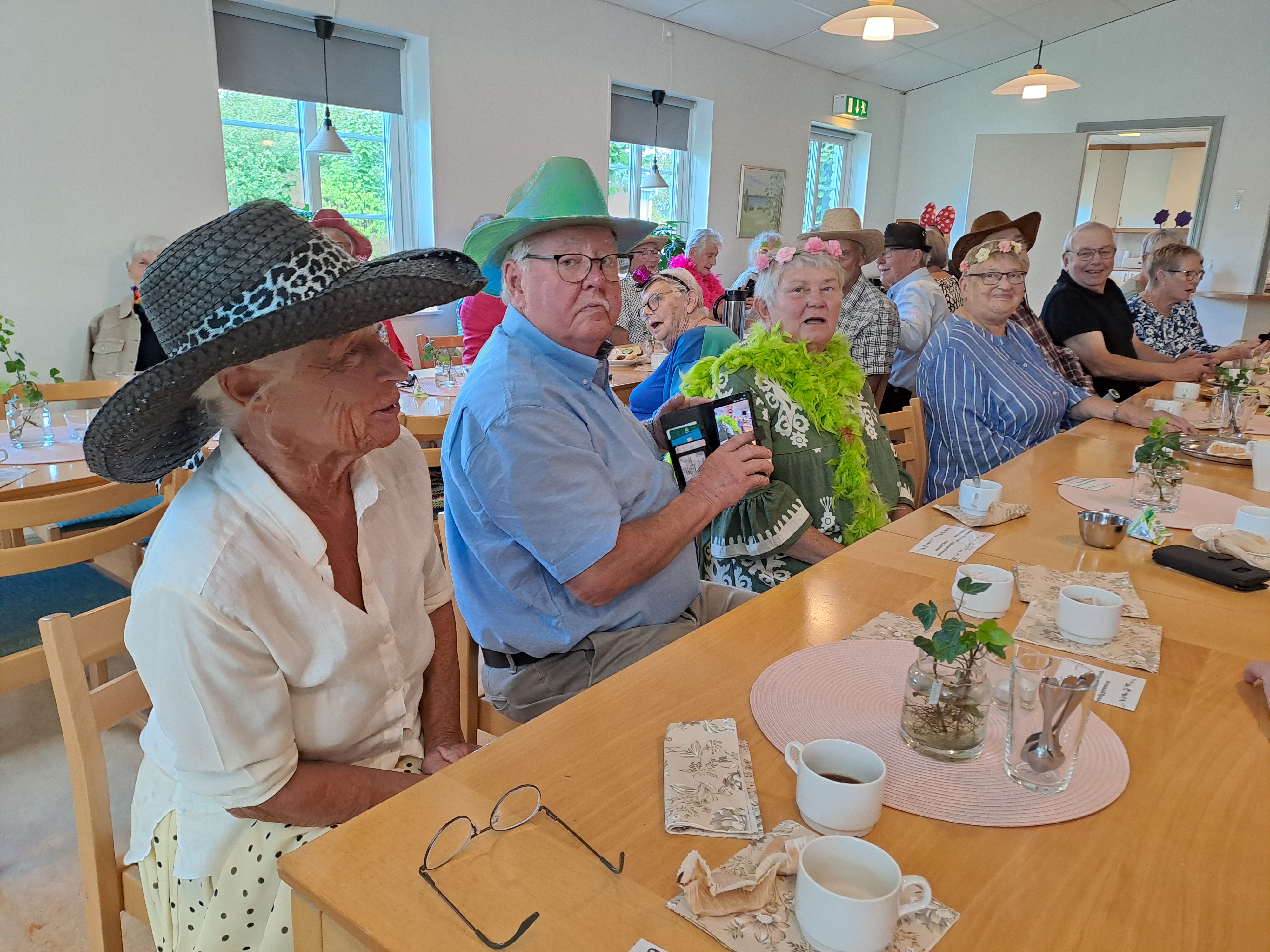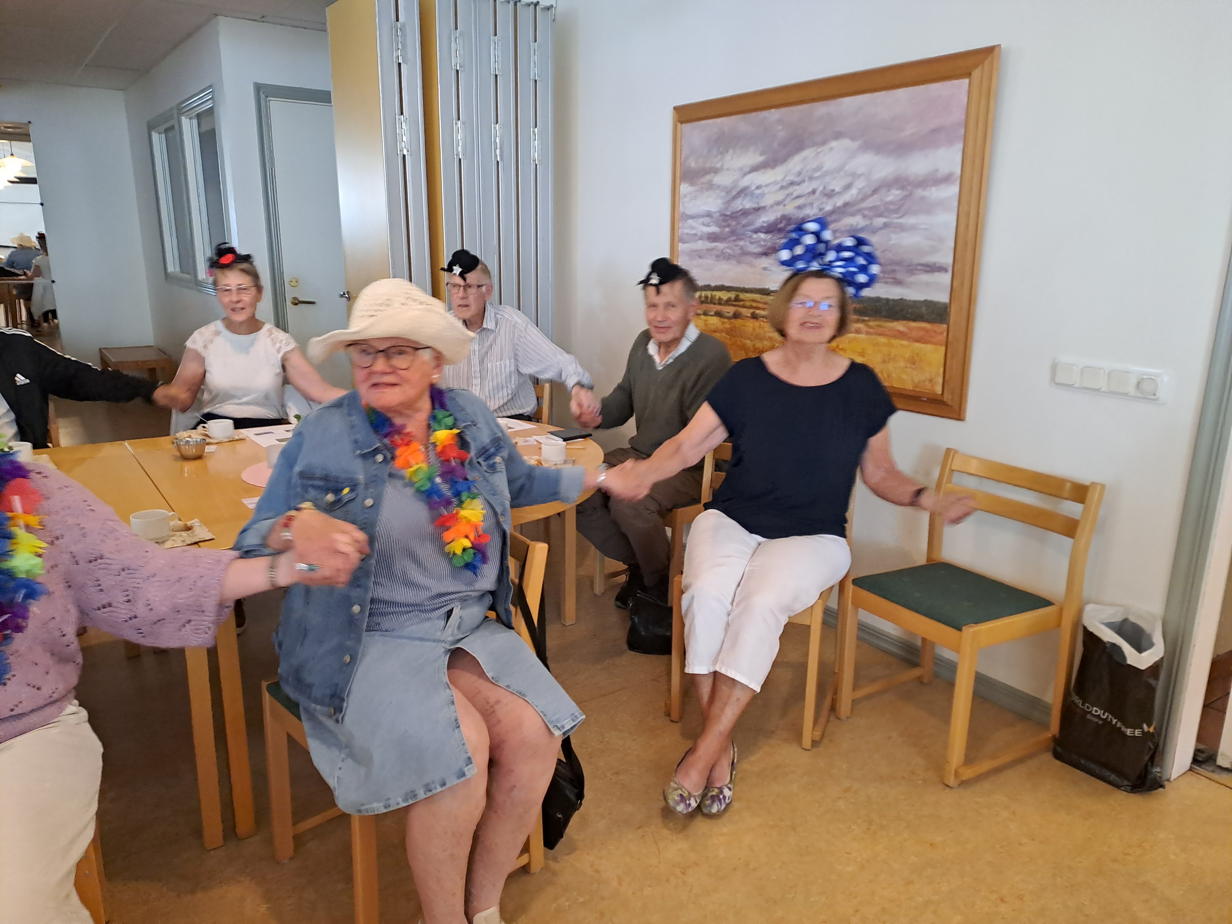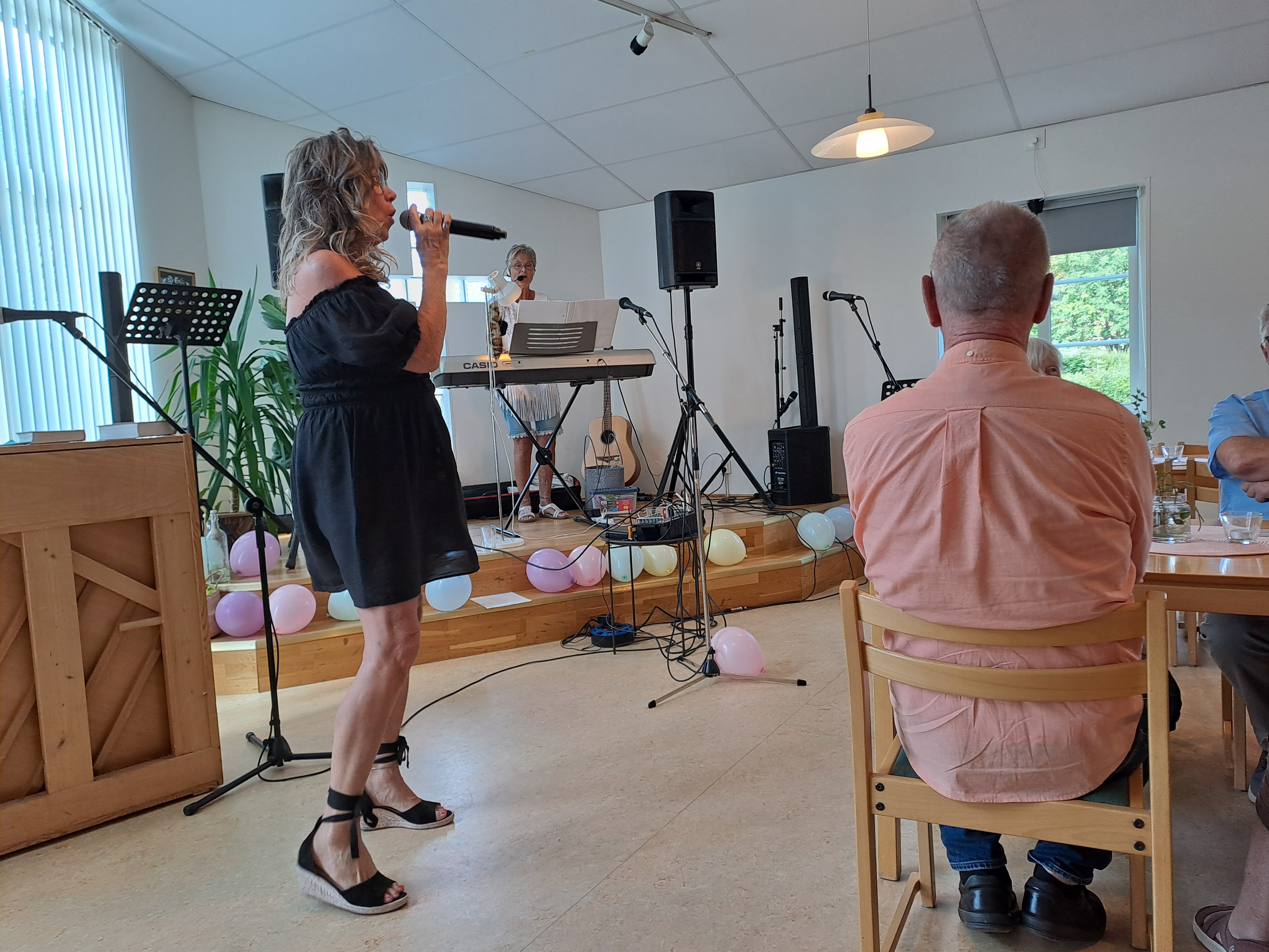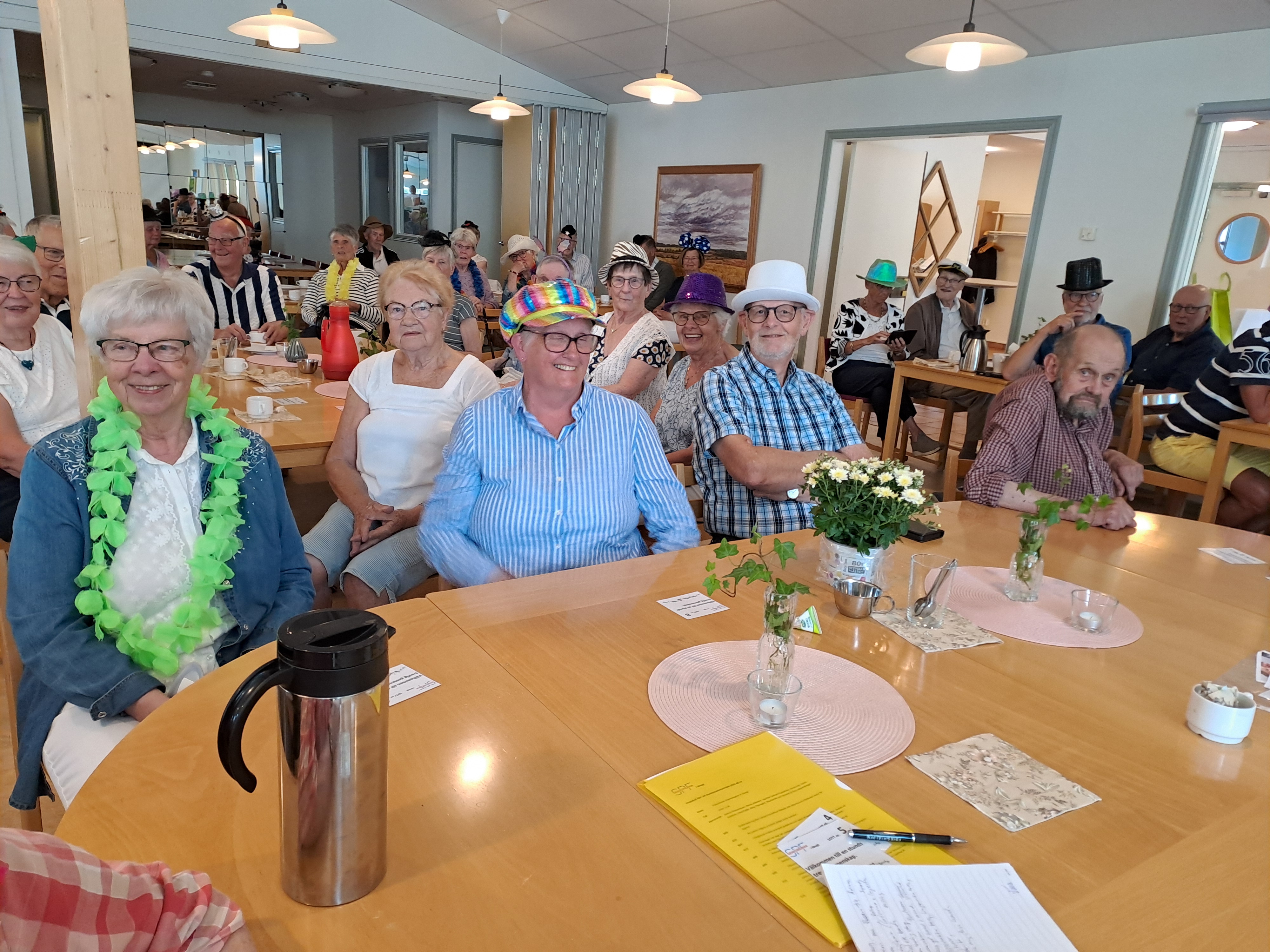 Efter att vid flera tillfällen sökt efter Sångfåglarna hade det lyckats att få dem till oss i Sävsjö. Ingela Östlund och Catarina Svensson en rutinerad duo. De framförde en bred repertoar av gammalt och nytt på ett klämmigt och medryckande sätt. Det blev en hel del allsång och det var med glädje alla deltog i sångerna. För att vi skulle bli lite extra modiga blev alla försedda med hattar och andra huvudprydnader och nu blev det verkligen fart i gänget. Tack till dessa glädjespridande tjejer.