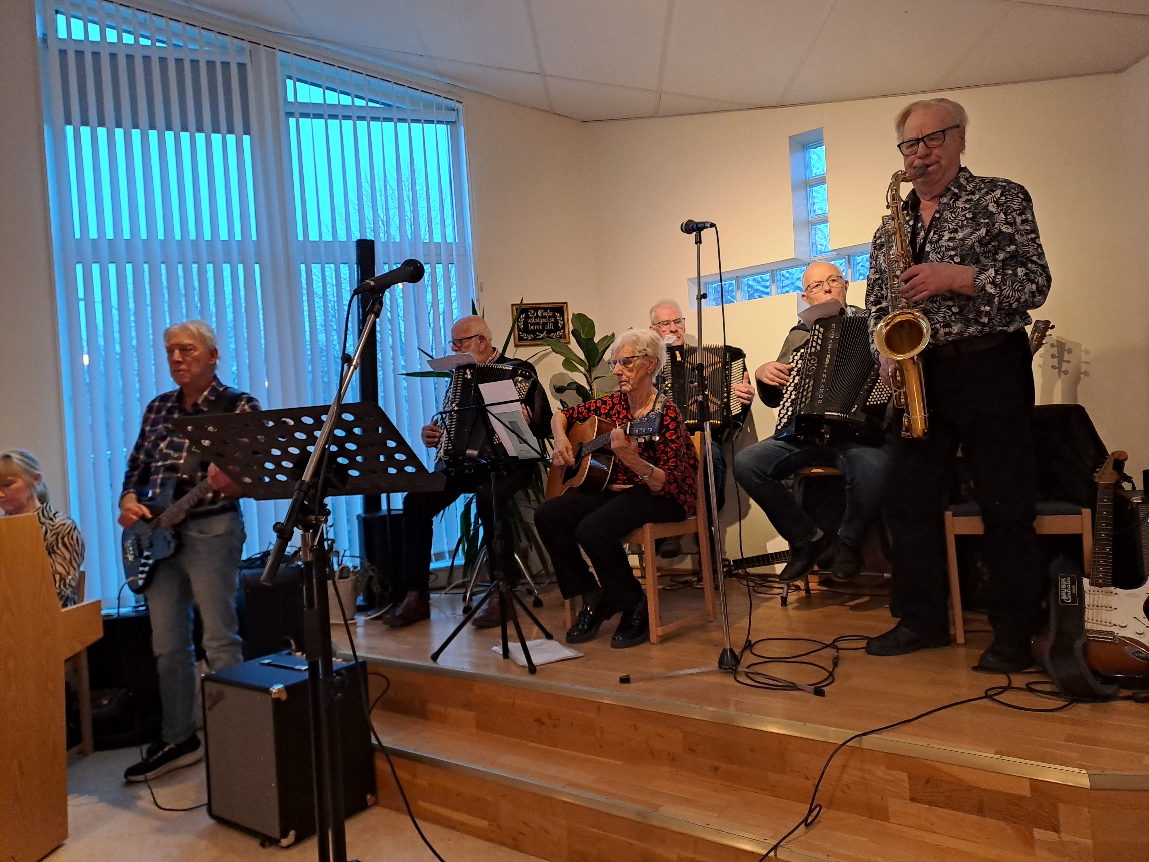 Musikgruppen 34:an med medlemmar från Vetlanda och Sävsjö bjöd på en blandad kavalkad av gamla godingar. Ett samspelat gäng på sju musikanter som spred glädje och munterhet i sitt framförande. Vi fick höra goa dragspelslåtar och när Arne plockade fram saxofonen var det synd att dansskorna inte var på. Musik är en viktig del vid våra träffar då den väcker känslor, lindrar stress och stärker vår gemenskap. Tack 34:an för er medverkan!
