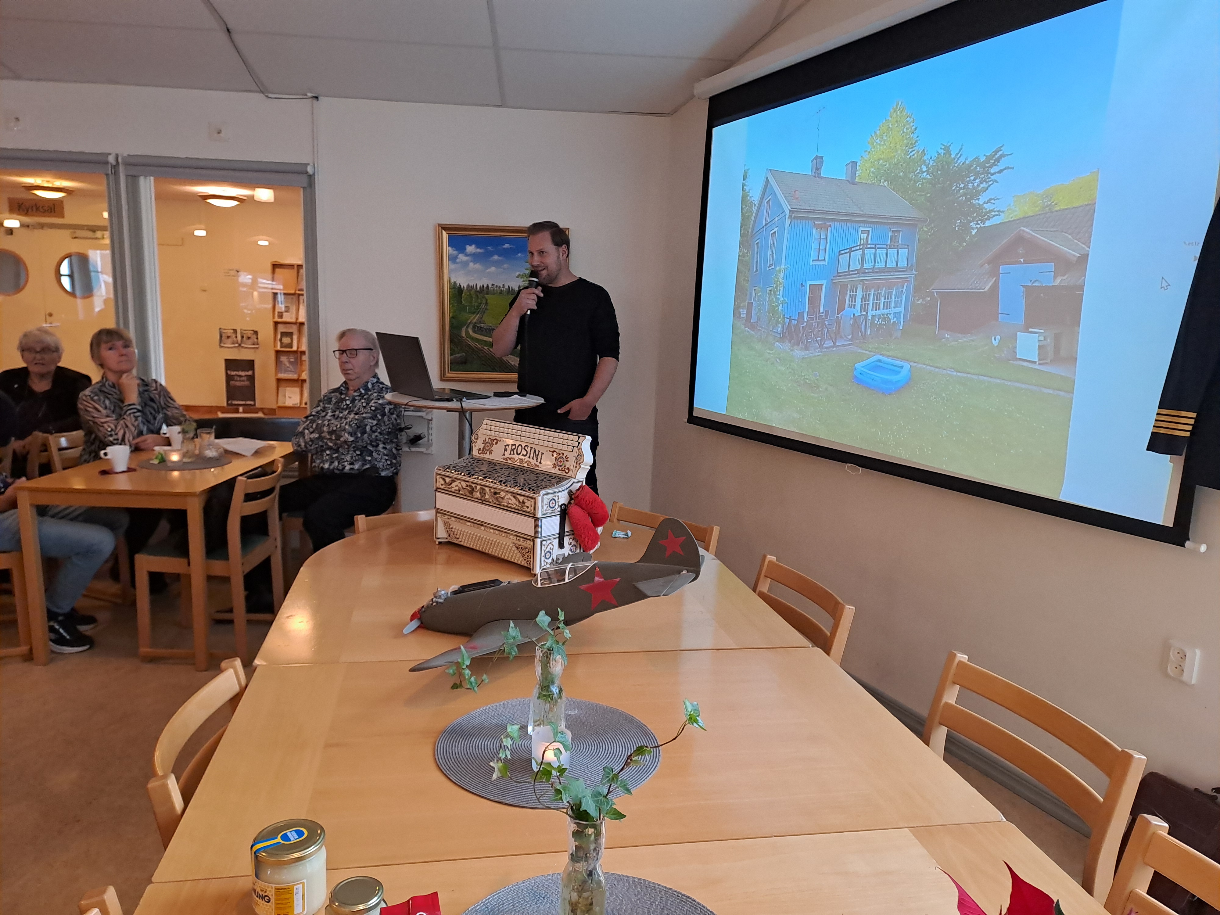 Väl på plats hälsade vår ordförande Ing-Mari alla välkomna och speciellt dagens gäster Daniel Evertsson och musikgruppen 34:an. Daniel Evertsson inledde med att berätta om hur familjen hittat sitt drömhus här i Sävsjö. Han kom snabbt in på att berätta om sitt intresse för gamla prylar som har funnits med sen länge. Bland det första han skaffade var ett Vevpositiv. Efter det ett hundra år gammalt Accordion dragspel som han totalrenoverat. Att han också är en duktig musiker fick vi erfara då han senare på dagen spelade ett stycke på just detta dragspel. Motorcyklar, en husbil, personbilar och lastbilar har köpts renoverat och sålts i en lång rad. Att renovera en Jukebox var tufft och då var jag nära att ge upp säger Daniel. Han berättar vidare att han är utbildad pilot och har jobbat med taxiflyg och som flygkapten på Skyways. Grabben är blott 46 år och har en vilja och tålamod utöver det vanliga vilket bidragit till att kunna genomföra allt det här, starkt jobbat. Nu säger han avslutningsvis att han lovat familjen att ta det lite lugnare. Vi får de hur det går!
