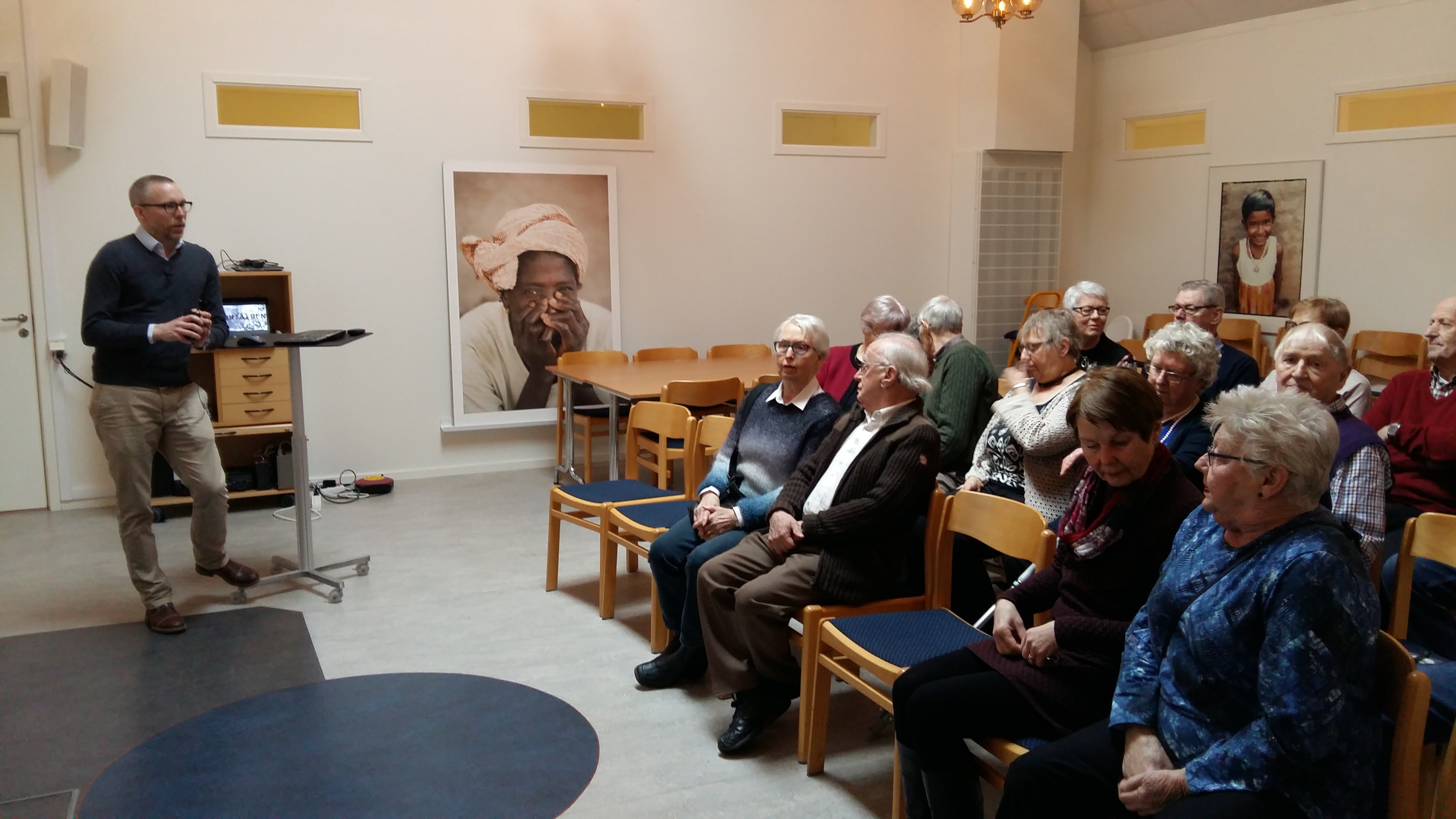 Strax var vi framme och blev hälsade välkomna av biträdande Generalsekreterare Mattias Ingesson. Han fortsatte med att berätta om hur verksamheten planeras och leds från kontoret här, där ett 20 tal personer arbetar. Huvudkontoter finns i Huskvarna där Generalsekreterare Daniel Gran och 40 medarbetere styr.