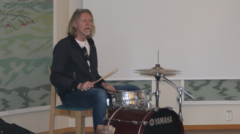 Hasse P, välkänd radioprofil från Radio Jönköping, underhöll oss med berättelser om sitt liv från uppväxten i Ödeshög till pensioneringen. Med 34 år på Radion i Jönköping finns mycket som hänt både roligt och tragiskt. Musiken har varit en ”röd tråd” genom livet via första anställningen vid Radion som grammofonproducent och nu till att lära pensionärerna i Bankeryd att klappa i rätt takt med Hasses spel på trummorna. Många minnen finns av personer och händelser som blivit bestående som Nancy 95, som var ett stort HV-fan, Agneta, som förlorade sina närmaste, Estonia-katastrofen. Hasse P, som är en känslig person, berättade med stor inlevelse. Den 23 juni 2023 gjorde Hasse P den sista dagen på Radion och tycke det var ”Skönt att sluta”. Bosse Bildoktorn är naturligtvis ett särskilt kapitel som ännu inte avslutats. Nu samarbetar de genom att ”podda” tillsammans från Bosses garage. Som vanligt informerades om kommande aktiviteter som fågelutflykt, allsångskonsert den 14 maj med möjlighet att få delta i kören, Bankerydsdagen den 23 maj och många aktiviteter på Träffpunkten. En som vanligt god fika och lottdragning avslutade en solig aprileftermiddag.