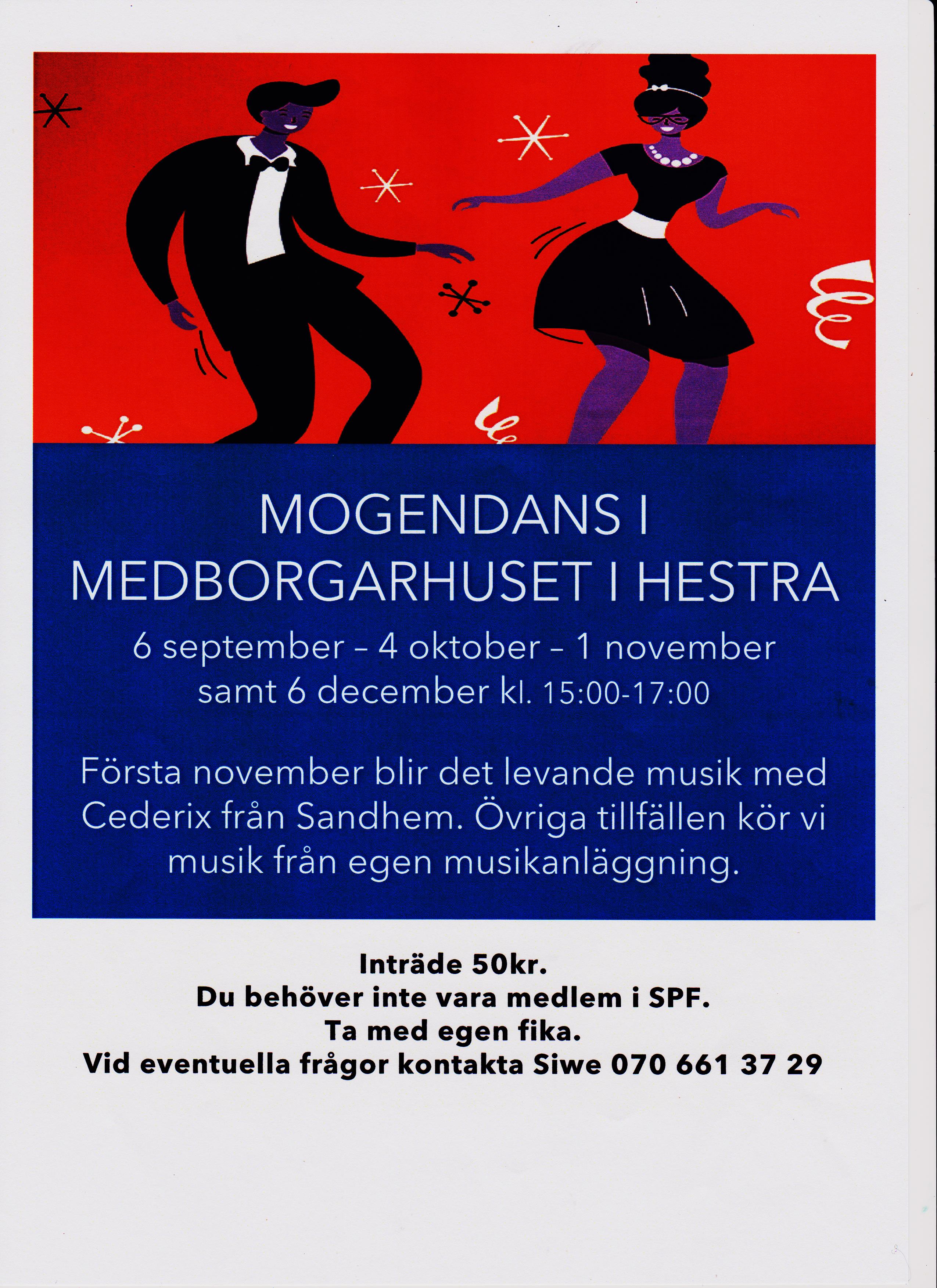 Då det framkommit önskemål om att start upp ett antal dansträffar under hösten så har styrelsen beslutat att göra detta till ett projekt som löper vidare under våren 2025. Det är inte bara från egna medlemmar som önskemålet kommer utan också från närliggande orter.