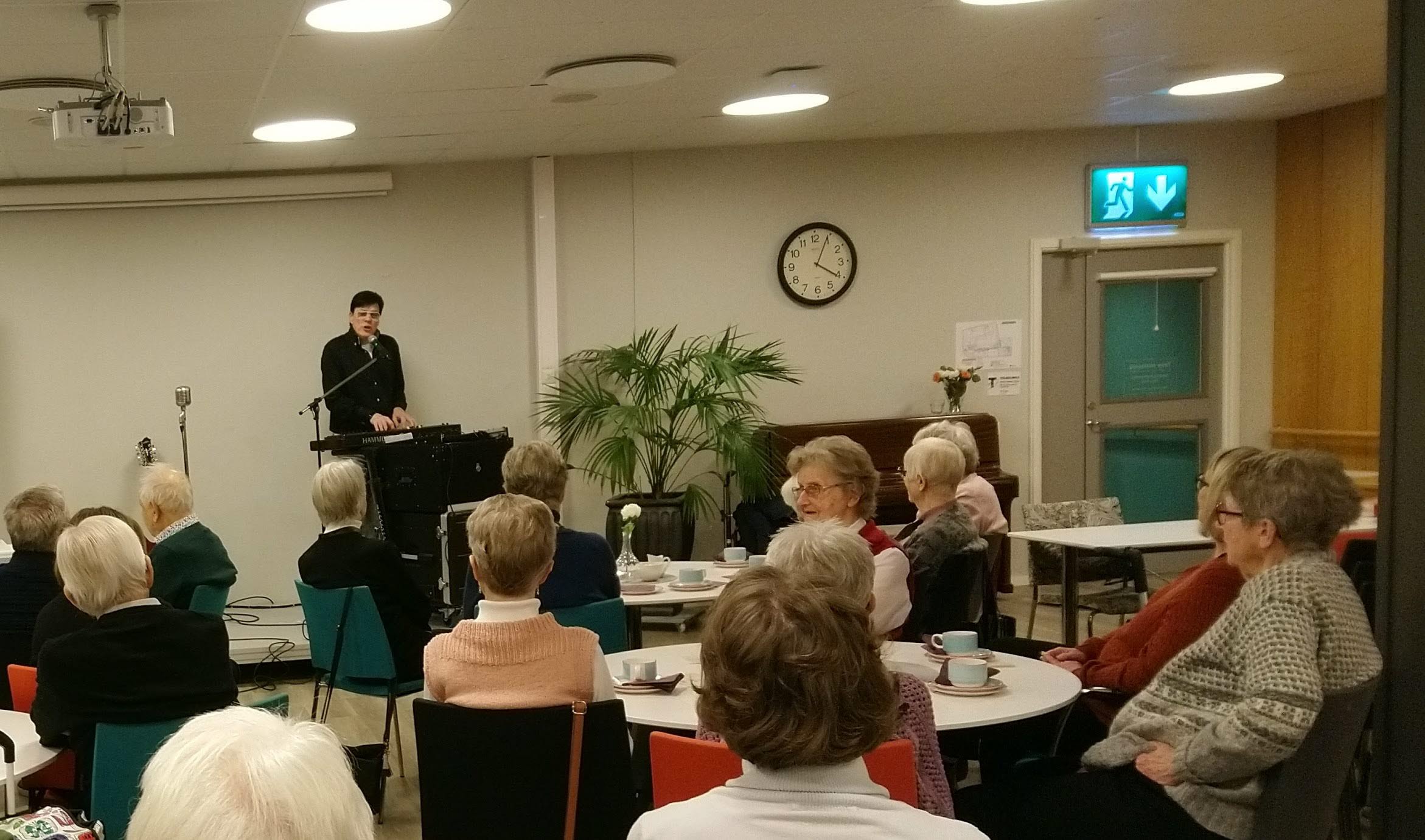 Vid vårterminens första träff hälsade vår ordförande välkommen till en stor lyssnarskara som kommit för att njuta av Ehrling "Elvis" Lundbergs musik .
