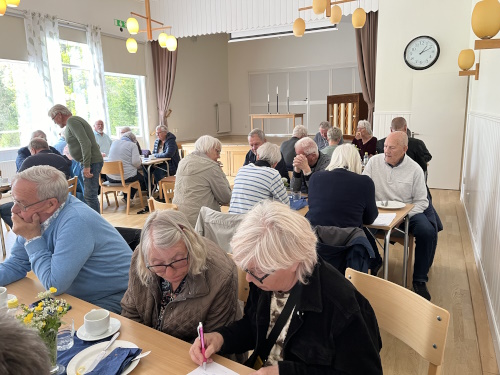 I förra veckan var det dags för vårt populära bilrally igen. Det märktes dock inte minst av den långa ringlande bilkön vid starten i Lövhult. Det var fyrtio bilar med sammanlagt 124 deltagare som deltog i rallyt. Bilisterna förseddes med karta och informationsmaterial innan de begav sig i väg på turen som var på cirka sex mil. Den här gången startade resan mot Eksjö och Ränneborg där förarna fick visa prov på sina föraregenskaper. Färden gick sedan vidare mot Höreda till Spakarps plantskola där deltagarna kunde botanisera bland många fina växter. Längs småvägar med blommande ängar och skir grönska passerade sedan resenärerna Ingarp, Björkeryd, Ännaryd, vindkraftparken i Bo mot Bjurvik för att nå slutmålet bygdegården i Nävelsjö. Utefter vägen fick deltagarna svara på frågor, testa körkunskaperna och delta i olika spel. Det gällde för lagen att samla på sig så många poäng som möjligt för att vinna rallyt. Det var glada lag som kom till målet och lät sig väl smaka av smörgåstårta, kaffe och hembakad kaka och trevlig gemenskap.