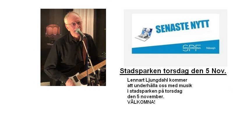På torsdag den 5 november kommer Lennart Ljungdahl att spela för oss i stadsparken kl.10.00