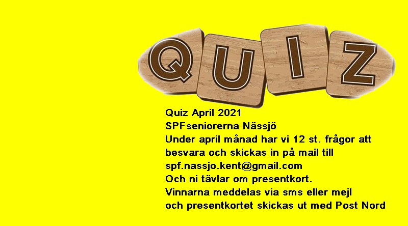 Quiz april 2021, under april månad har vi 12 st. frågor att besvara.