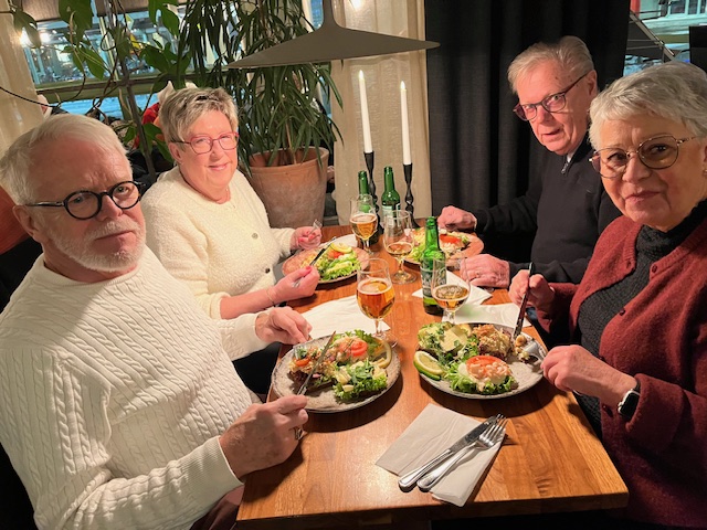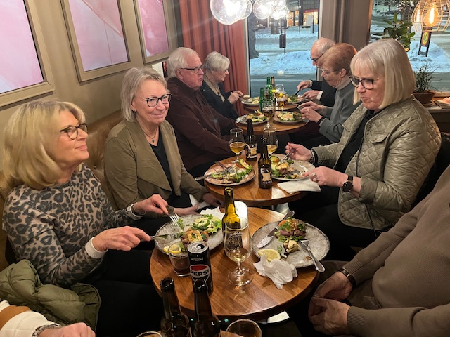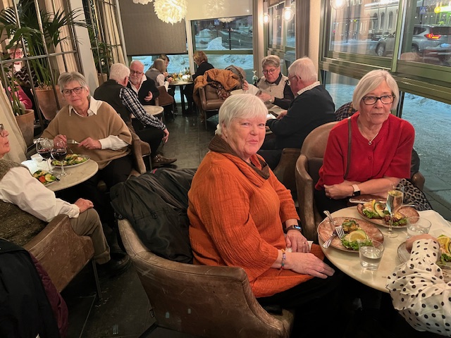 Under en trivsam kväll i förra veckan samlades vi ett 80-tal SPF seniorer på Thimons för att umgås och njuta av konditoriets läckerheter. Vi serverades klassiska danska smörrebröd som avslutades med chokladwienerbröd. Den goda maten och stämningen förstärktes av Lelle Pianos softa musik i bakgrunden.