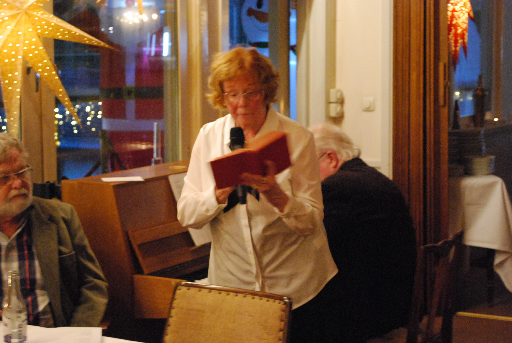 Efter sången "När ljusen tändas därhemma" och solsång av Leif Persson skildes de mätta och belåtna pensionärerna.