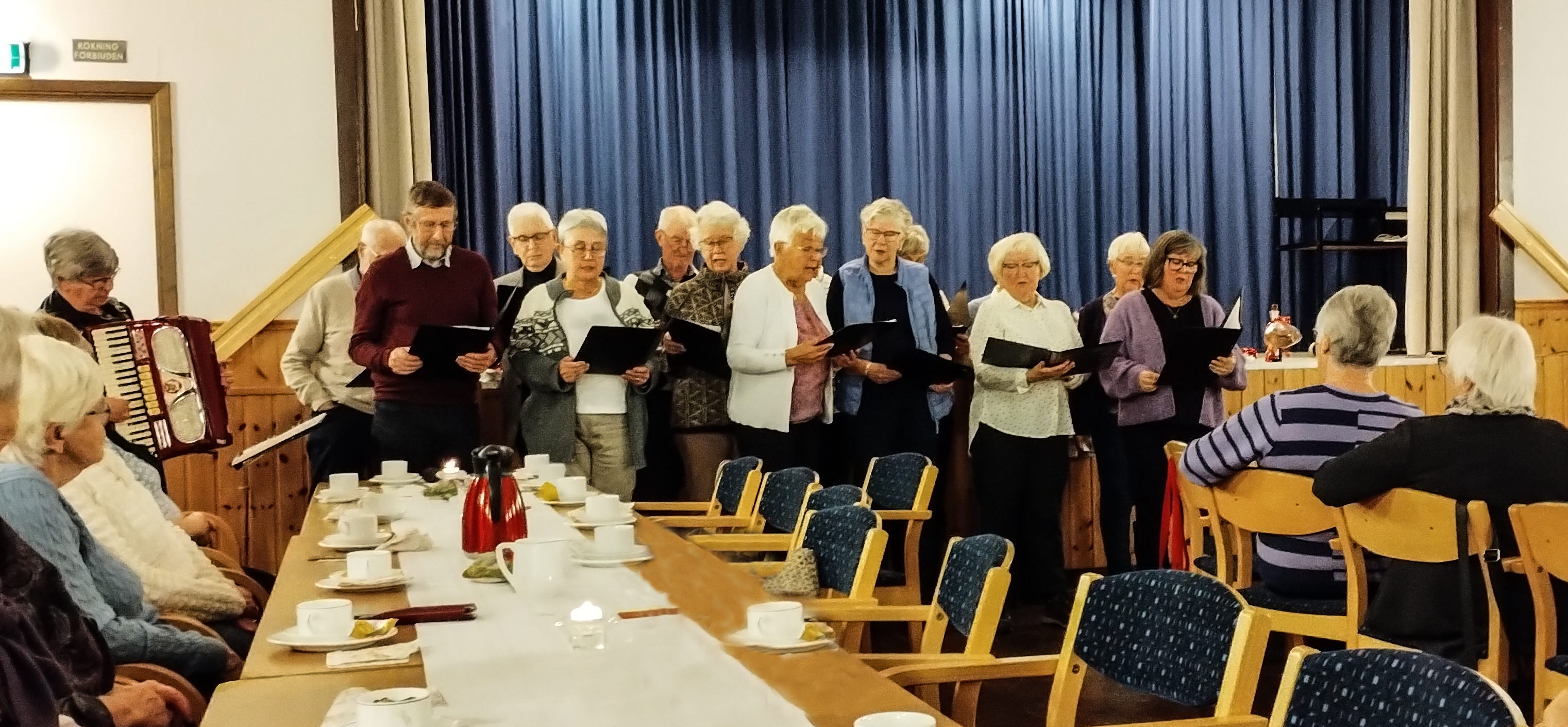 Ingvar Eriksson från Väcklinge berättade om olika lokala dialektords betydelse och varvade detta med roliga historier från hans outsinliga förråd. Kören bidrog med skönsång.