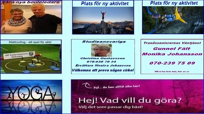 Medlemmarna fick information om höstens många hälsofrämjande aktiviteter som studiebesök på Seniorcentralen, gymträning, mattcurling, sittyoga, resor, telefonkurs, föredrag om ost- och ostkakstillverkning, väntjänstträff, seniorbio och dans. Vidare informerades om olika utbildningsdagar för styrelsemedlemmar och ombud.