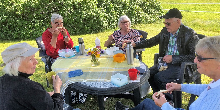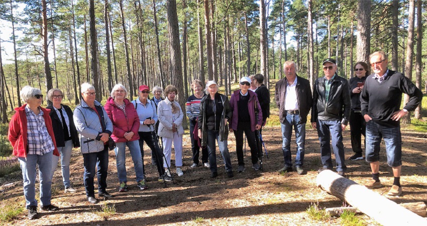 Naturpromenad med SPF seniorerna i Värnamo, strålande sensommarväder. Information av vad som fanns runt gränsen mot Store mosse nationalpark lämnades. Anja Slättengren och Leif Hultman var guider.