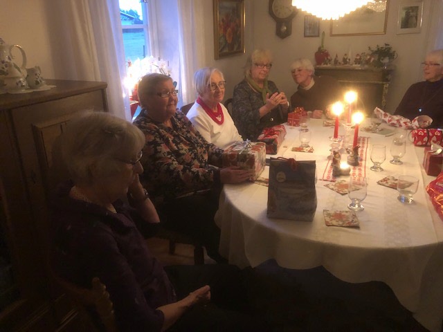 SPF:s Loppisgrupp hade på tisdagseftermiddagen den 5 december höstavslutning hemma hos Anja Slättengren där det intogs smörgåstårta och det byttes julklappar
