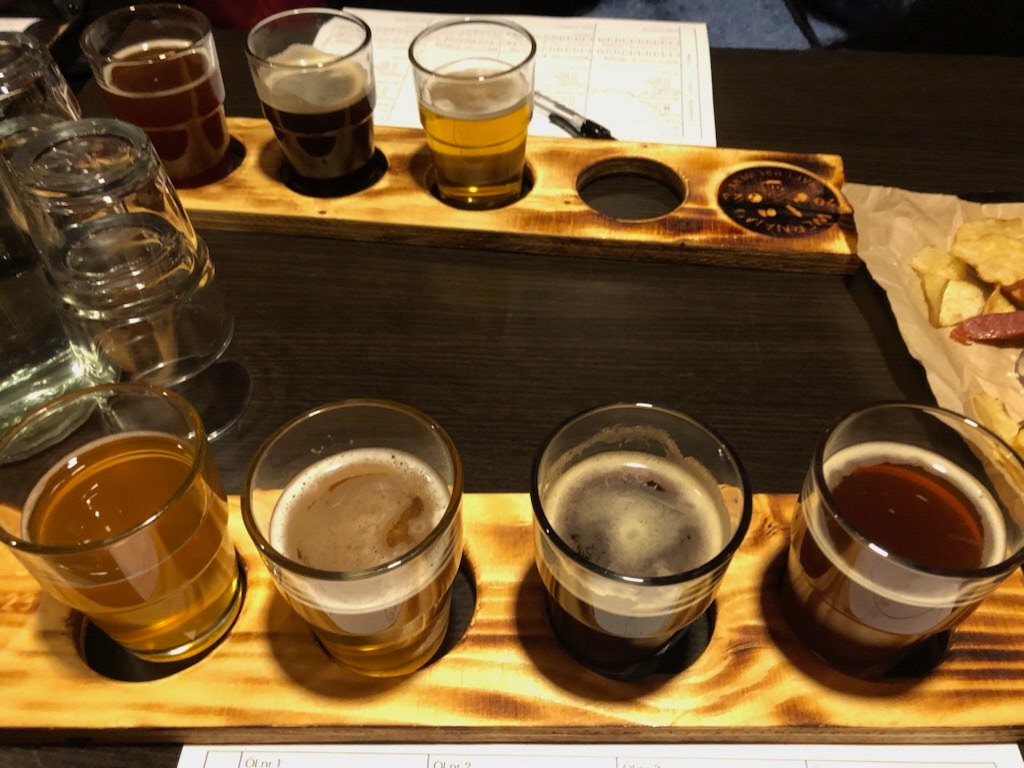 Efter genomgången inne i bryggeriet satte vi oss vid borden, där provbrickan med olika ölsmaker var framsatta. Vi blev testade i hur vi kunde känna olika smaker ur ölet, bedöma egenskaper som färg, fruktighet, klarhet, beska mm. Han guidade oss igenom hela ceremonin, och till slut hittade vi rätt.