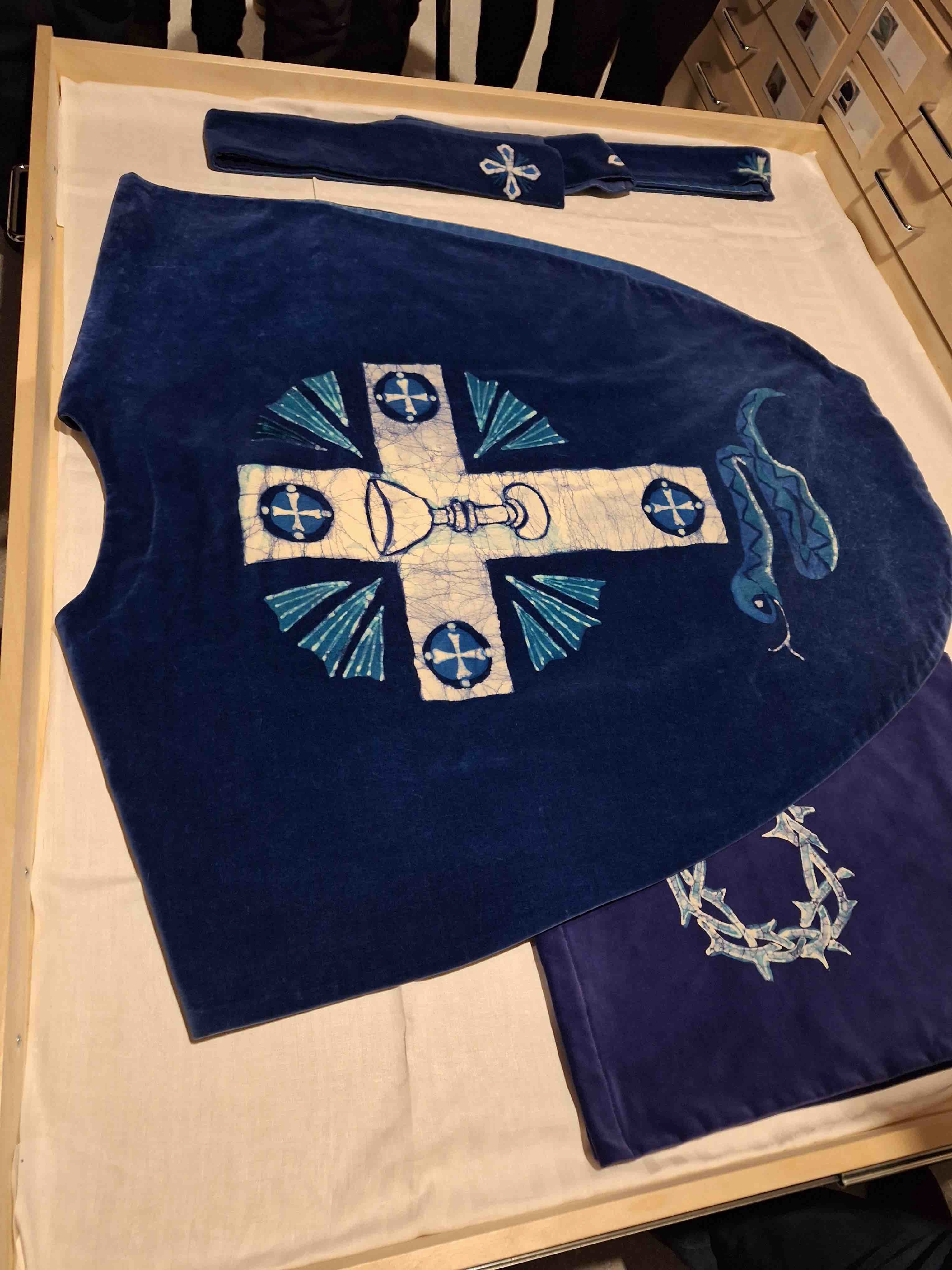 Väl bevarade i byråer låg prästens skrud, bl.a olika Mässhake och stola som bärs över alban, mässhaken i olika vackra färger.