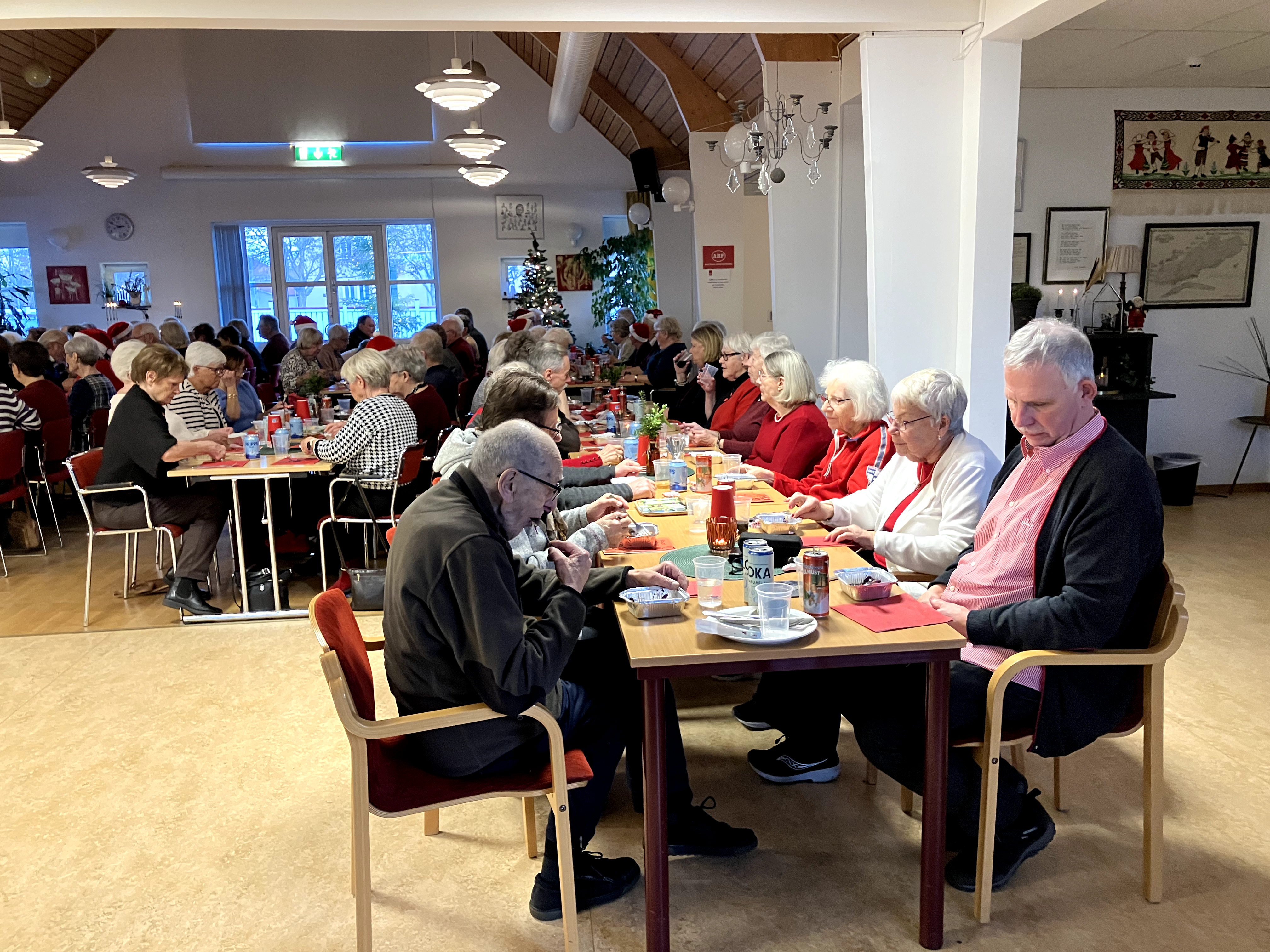 Måndagen den 15 december 2025 träffades 100 medlemmar på Jutegården för att äta en jultallrik och umgås under trevliga former.