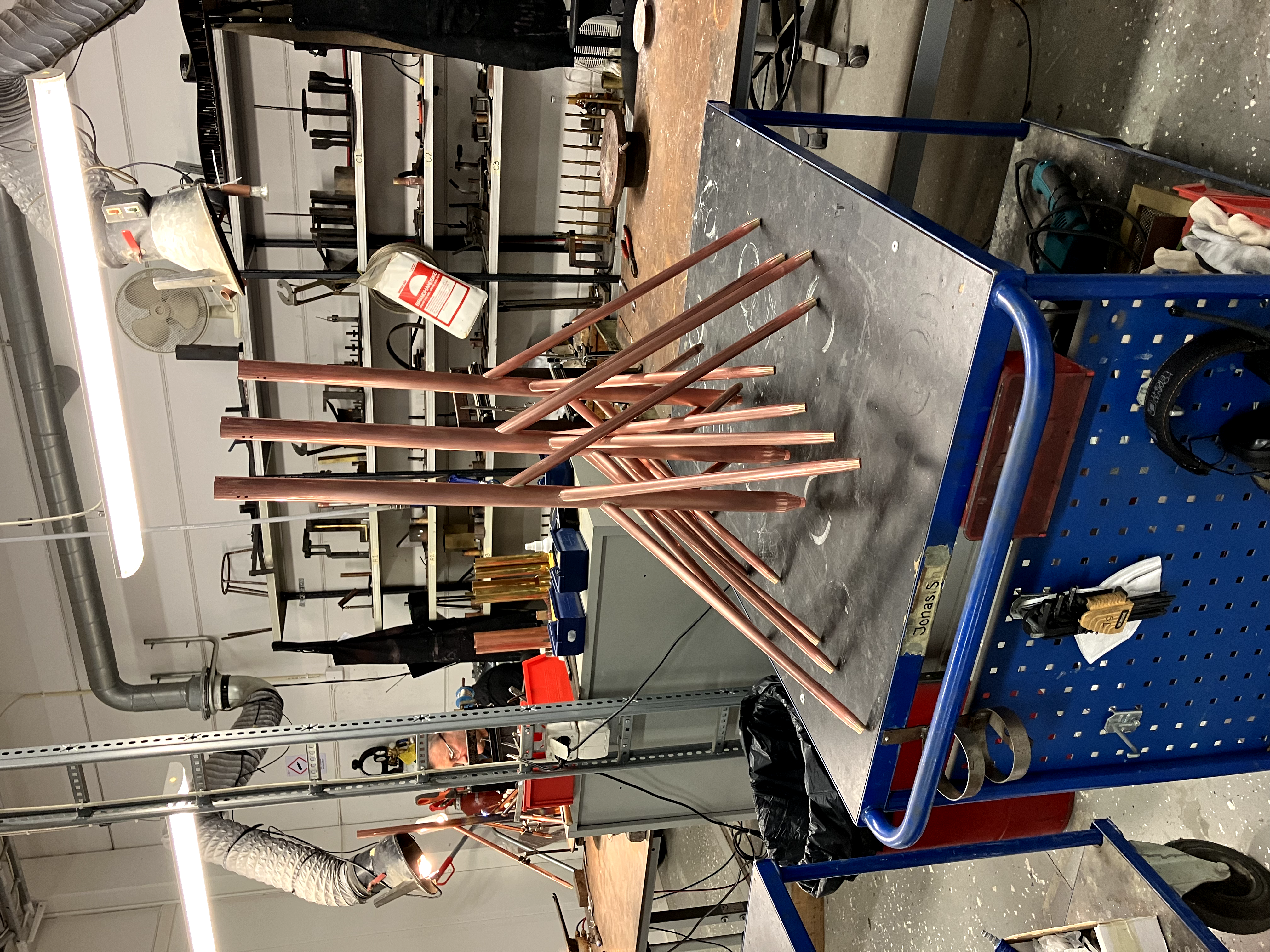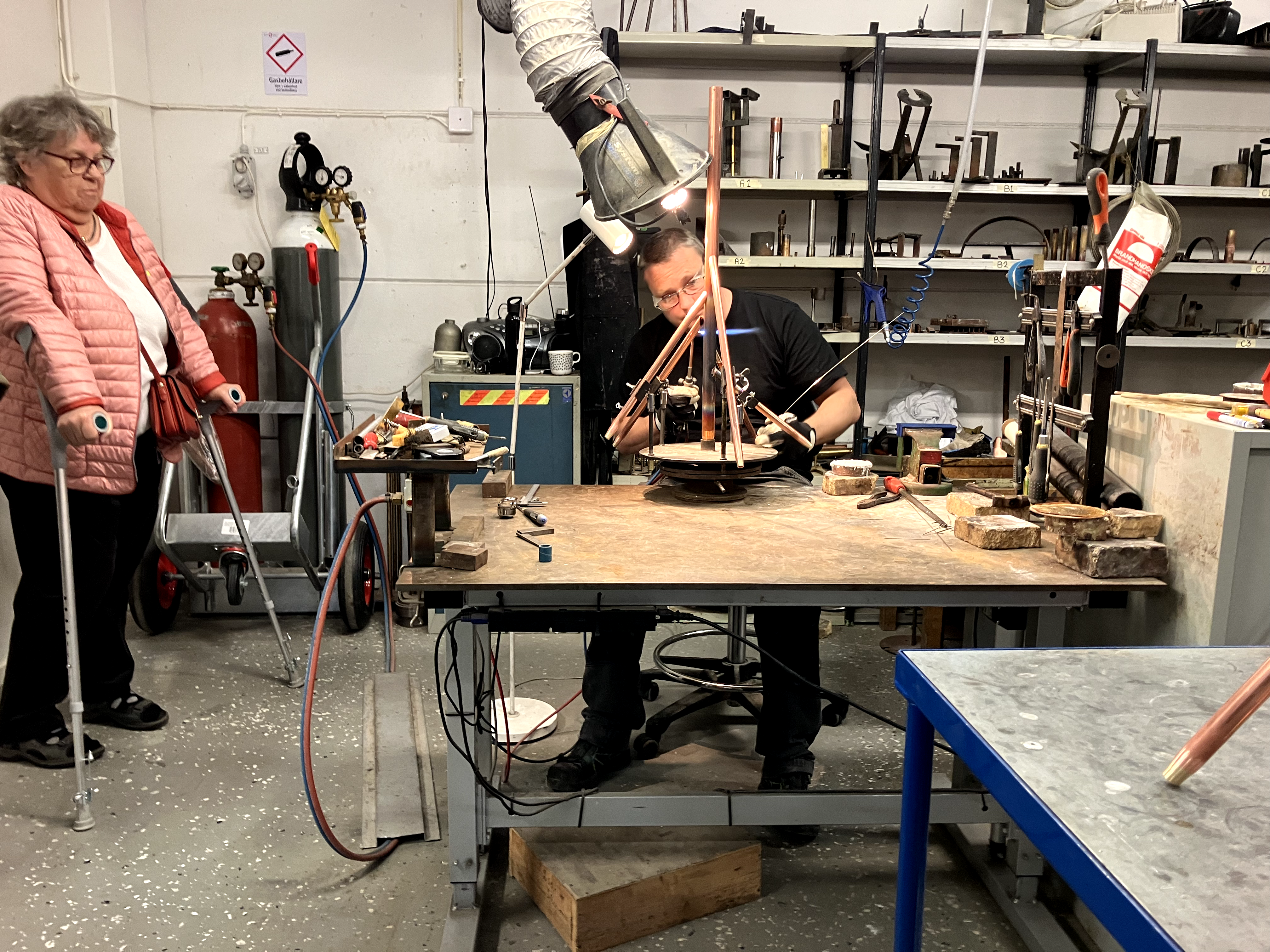 Gruppen som jag själv tillhörde började kl 12,30. Vi togs emot av Mathilda Abelsson, för att benämna hennes roll på företaget får jag använda hennes titel som anges på engelska i deras informationsblad "Account Manager Sweden South". Från kontorsdelen lotsades vi till personalmatsalen där vi fick se en reklam- och informationsfilm om företaget. Ursprunget till nuvarande företaget startade i Örsjö 1948, som ett företag med diverse mekanisk tillverkning. Efter hand gled produktionen mer och mer över på belysningsarmaturer. För tio år sedan hade man vuxit ur lokalerna i Örsjö och flyttade verksamheten till Nybro, i före detta Wilos lokaler, som tillverkat möbler där. I och med att sådan verksamhet är utrymmeskrävande så är man idag långt ifrån trångbodda. Personalen består av ett 20-tal yrkesarbetare och 10-talet tjänstemän. Därefter gick vi en runda ute i "fabriken" och såg olika arbetsmoment som ingår för att bygga en armatur. Man använder sig i huvudsak av de tre metallerna mässing, koppar och stål, där stål är den enda som lackeras. Detaljer som skall lackas skickas till Mönsterås, koppar däremot som blivit blåanlöpta vid uppvärmning betar man på plats i syrabad. Som i ett led att vara skonsamma mot miljön så har man sedan fyra år ett stort antal solpaneler på taket. För att ta vara på spill från produktionen har man skapat en armatur som byggs av mässingsplåt där tidigare har stansats ut rondeller till armaturer. Omsättningen idag ligger på ca 50 miljoner, varav ca 50 % går till privata marknaden, de övriga 50 säljs fördelat på "Contract och Hopspitality".