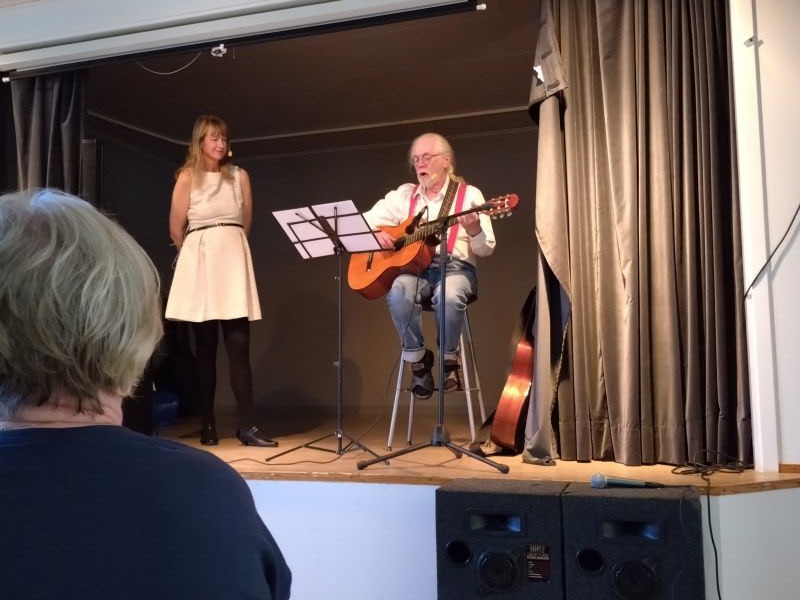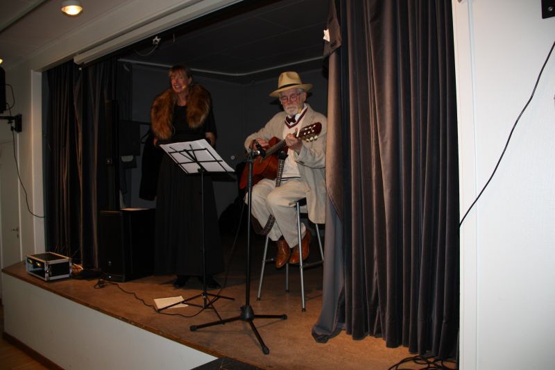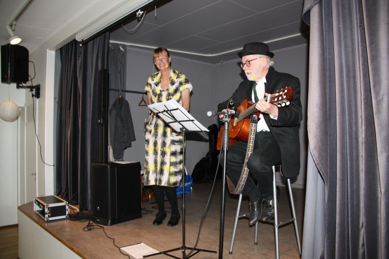 Vid månadsmötet i Arbygården underhöll Ulf och Elisabeth med låtar från 20 - 70-talet varvid de använde tidstypiska kläder.
