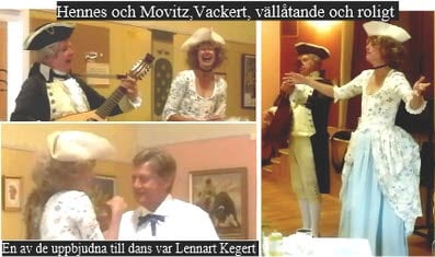 - Efter en underbart god festmåltid dansade två glada personer in. Det var Hennes och Mowitz som i 1700-talskläder alldeles strålande framförde ett Bellmanprogram med sång till luta.