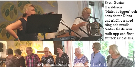 - En hemlig gäst visade sig vara Sven-Gustav Haraldsson "Hålet i väggen" och hans dotter Diana som underhöll oss med sång och musik på dragspel, ukulele och keyboard.