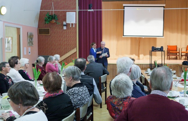 Därefter bänkade man sig i bygdegården och Håkan Persson hälsade 50-talet medlemmar välkomna och hoppades på en gemytlig och trevlig eftermiddag.
