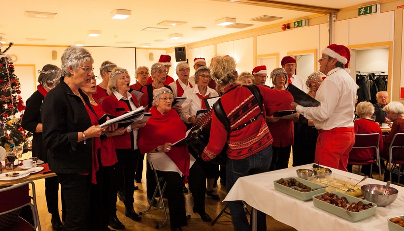 SPF-kören underhöll med sin repertoar av välkänd julmusik.